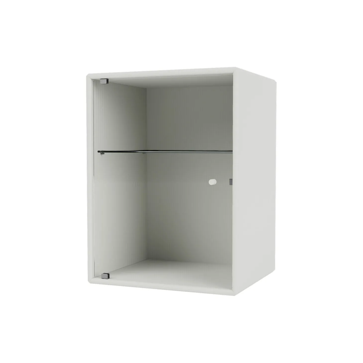 RIPPLE er et lille skab til badeværelset – perfekt til opbevaring af wellness- og skønhedsartikler. Skabet har en glaslåge i riflet glas og et lakeret greb. En glashylde er placeret indvendigt 18,3 cm fra toppen. RIPPLE fås kun med ophængsbeslag.