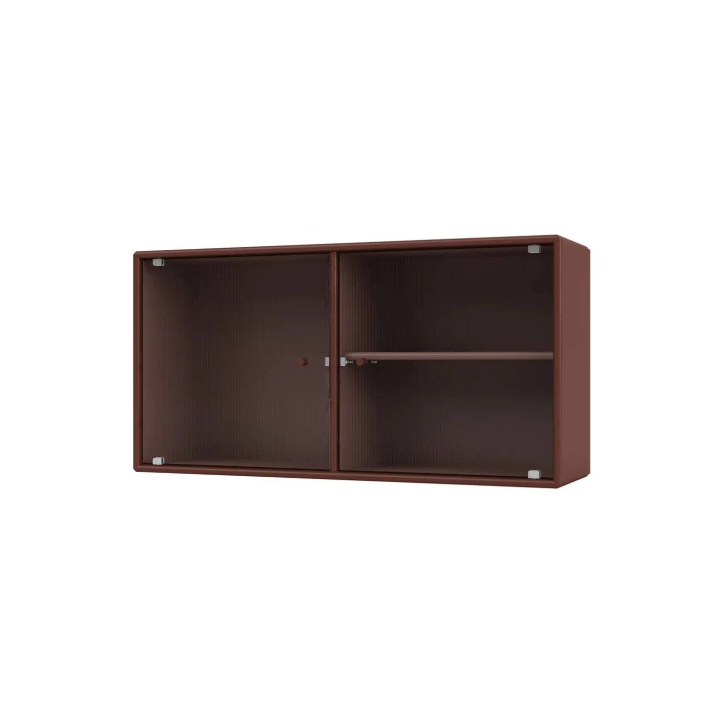 RIPPLE I er et væghængt vitrineskab med 2 låger i riflet glas. Skabet kan bruges som overskab i køkkenet, som et dekorativt skab i stuen eller spisestuen. Skabet har 1 flytbar hylde med bærere, som gør det lettere at arrangere og omarrangere hylden efter behov.
