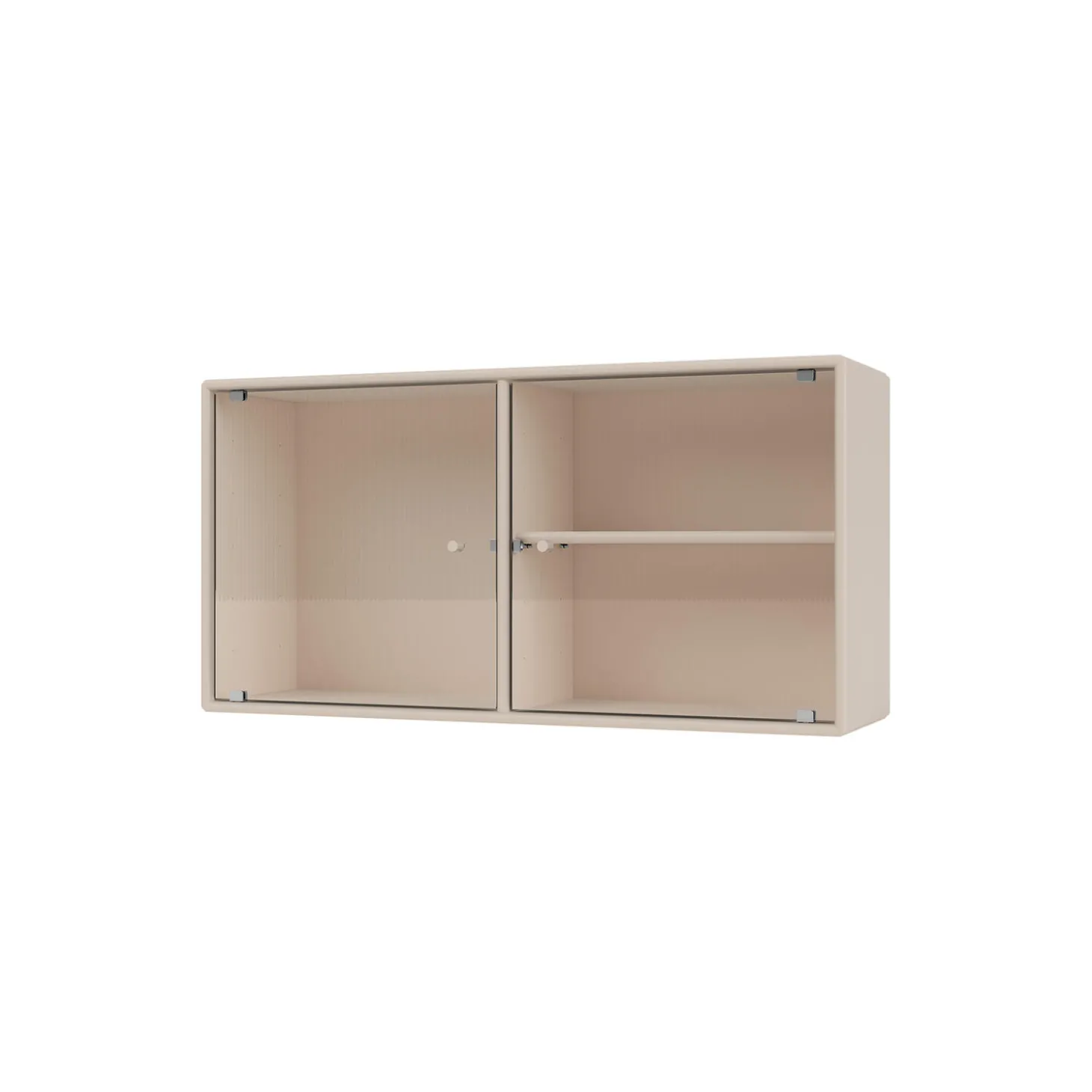 RIPPLE I er et væghængt vitrineskab med 2 låger i riflet glas. Skabet kan bruges som overskab i køkkenet, som et dekorativt skab i stuen eller spisestuen. Skabet har 1 flytbar hylde med bærere, som gør det lettere at arrangere og omarrangere hylden efter behov.