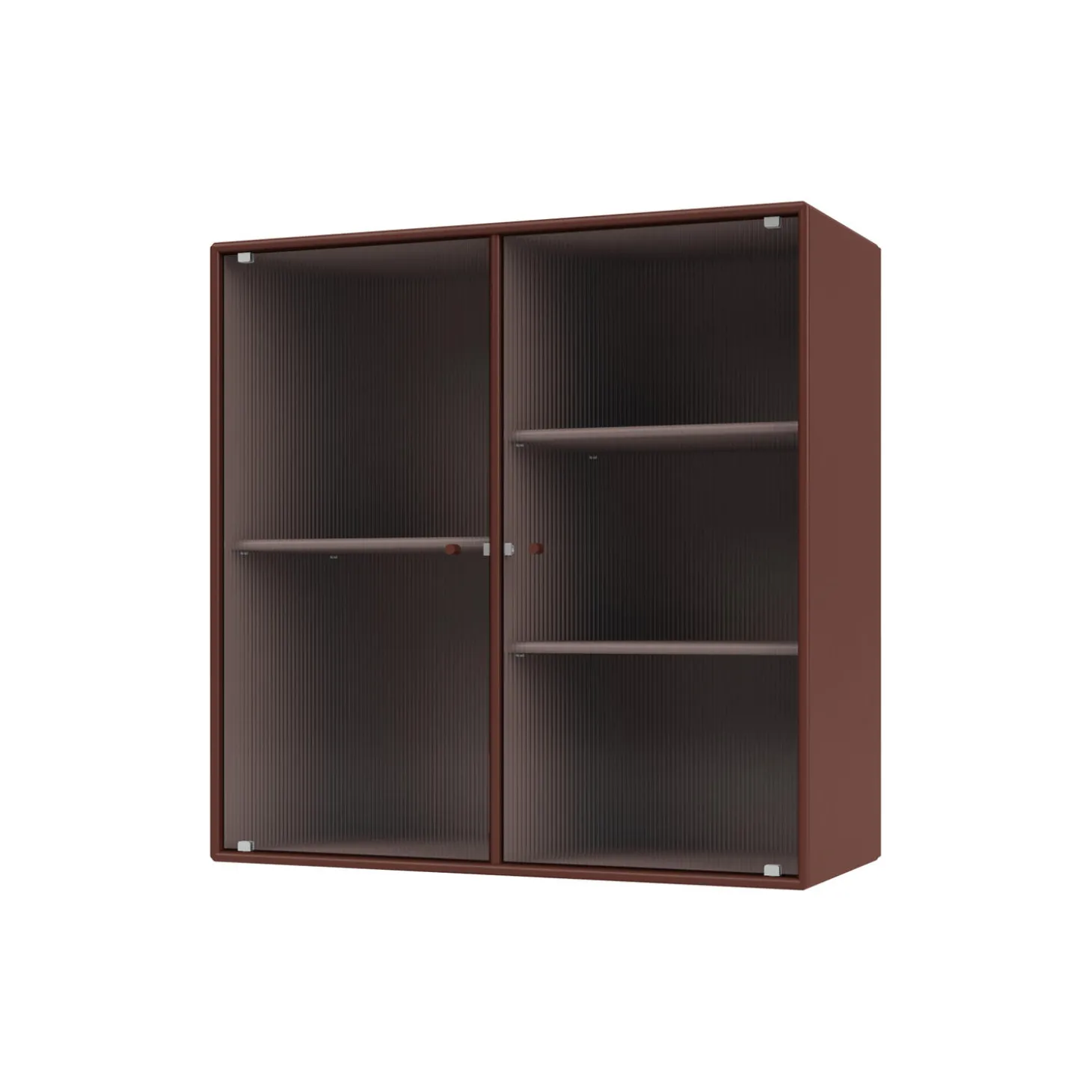 RIPPLE II er et vitrineskab med 2 låger i riflet glas. Skabet fås med ophængsbeslag, sokkel og ben. Det kan bruges som et overskab i køkkenet eller som et udstillingsmøbel i stuen eller spisestuen. Skabet har 3 flytbare hylder med bærere, som gør det lettere at arrangere og omarrangere hylderne efter behov.