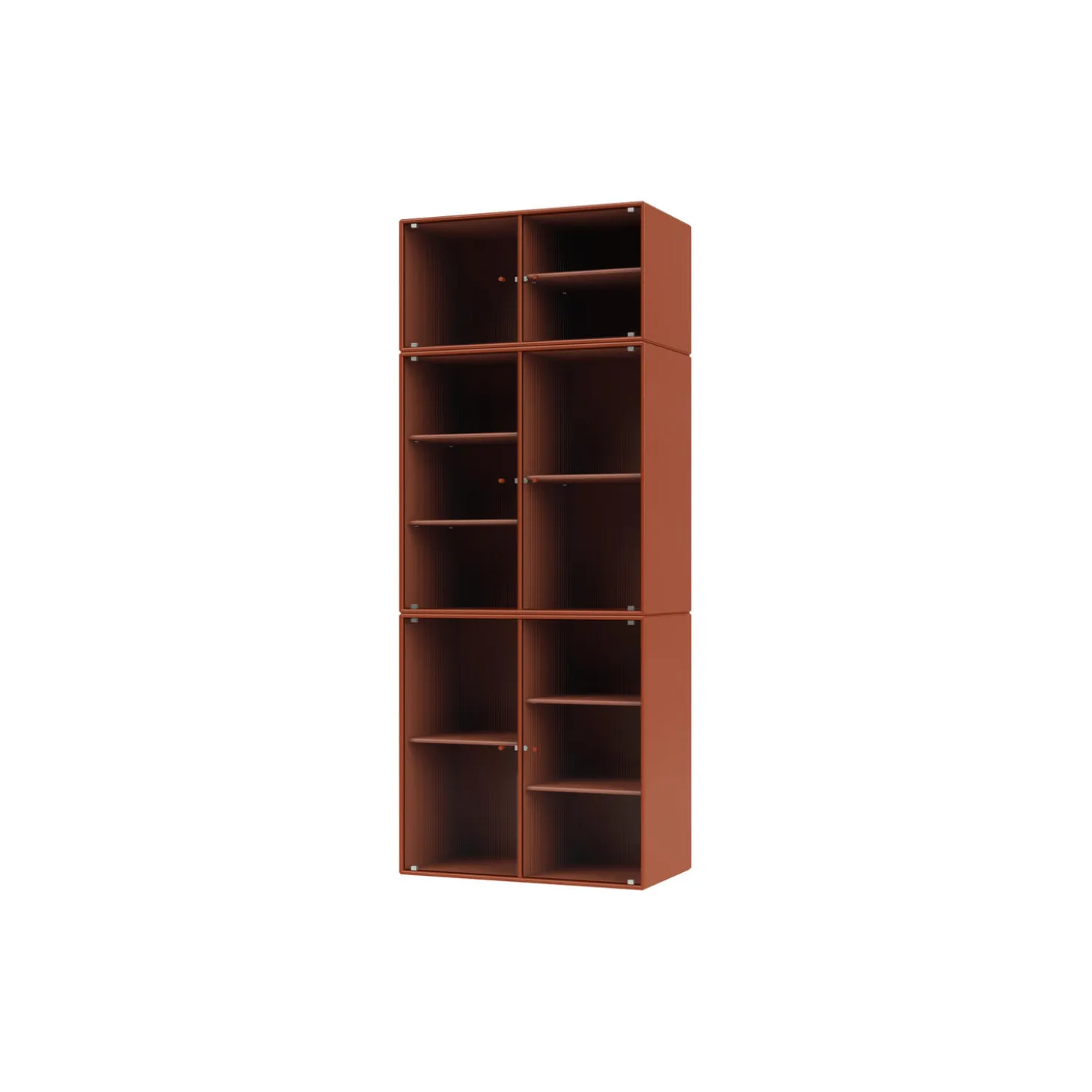 RIPPLE IV er et stort vitrineskab med 6 låger i riflet glas. Skabet er ideelt til opbevaring af service i spisestuen eller køkkenet. Det kan også rumme højere genstande som vaser. Skabet har 7 flytbare hylder med bærere, som gør det lettere at arrangere og omarrangere hylder efter behov.
