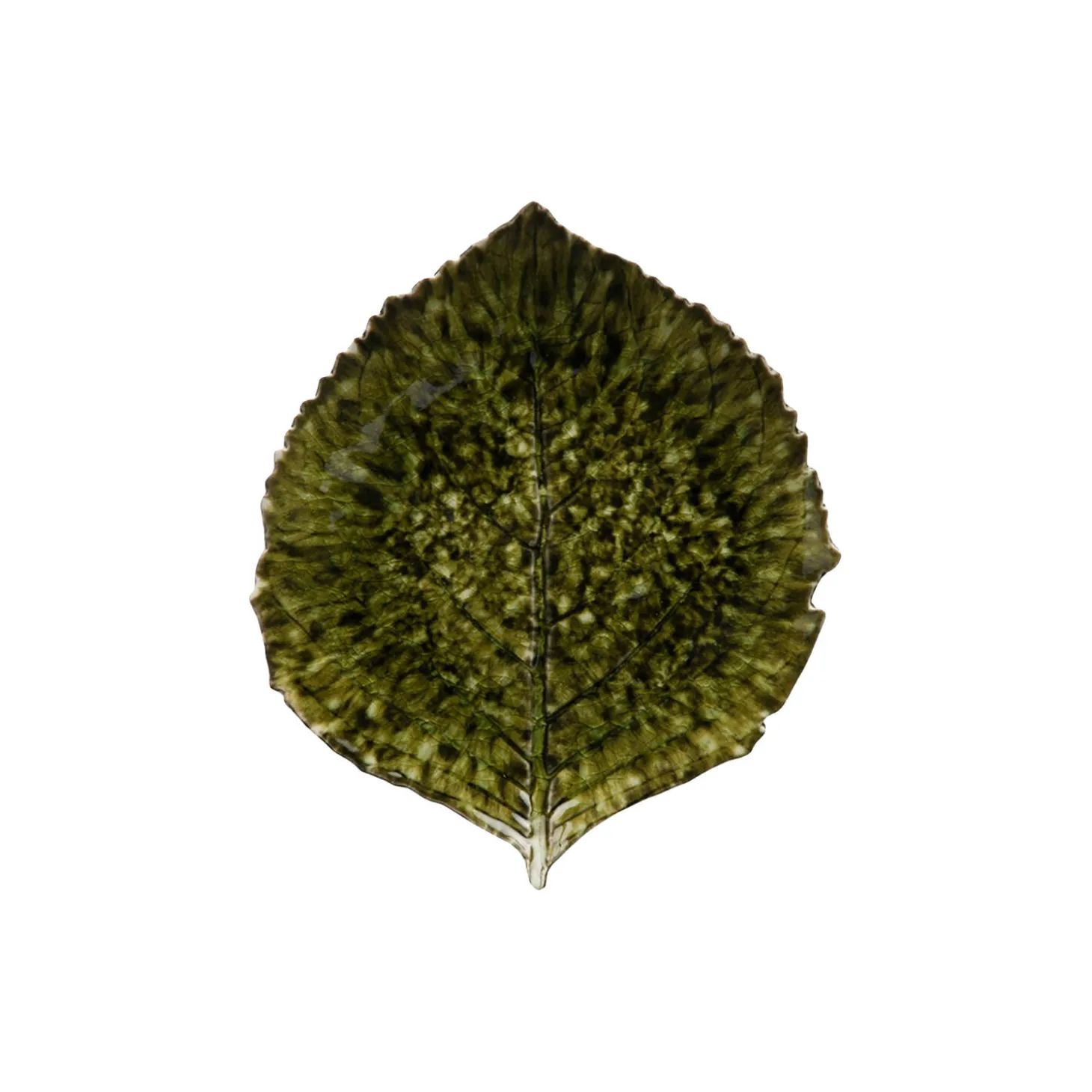 Riviera tallerken hortensiablad i keramik fra Costa Nova. Farve: mørkegrøn/sort. Mål: 22×19 cm. Design: Christian Tortu.