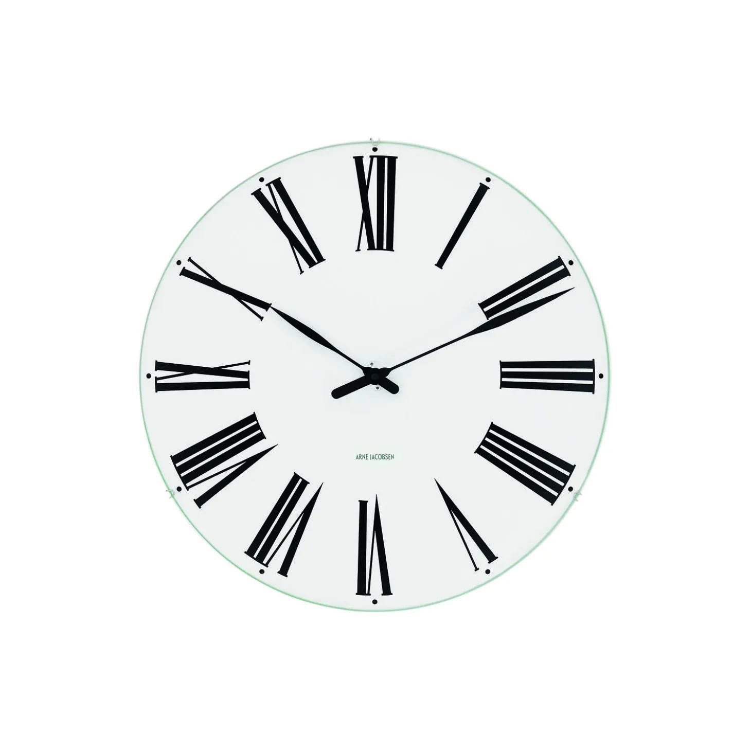 Arne Jacobsens Roman vægur er ikke kun et smukt og funktionelt ur, men også et symbol på dansk designhistorie. Roman blev skabt til Århus Rådhus, hvor det den dag i dag hænger på det 60 meter høje rådhustårn udført i norsk mamor. Århus Rådhus er anerkendt for sin særlige arkitektur og monumentale udtryk. Indviet i 1941 og efterfølgende i 1994 fredet for derefter i 2006 at blive indkluderet i Kulturkanonens arkitektursektion. Som Roman navnet indikerer er de romerske tal på skiven en karakteristisk del af uret, der med sit konkave glas nærmest svæver på væggen. Denne version af uret med en diameter på 48 cm vil være et stykke skulptur i boligen.