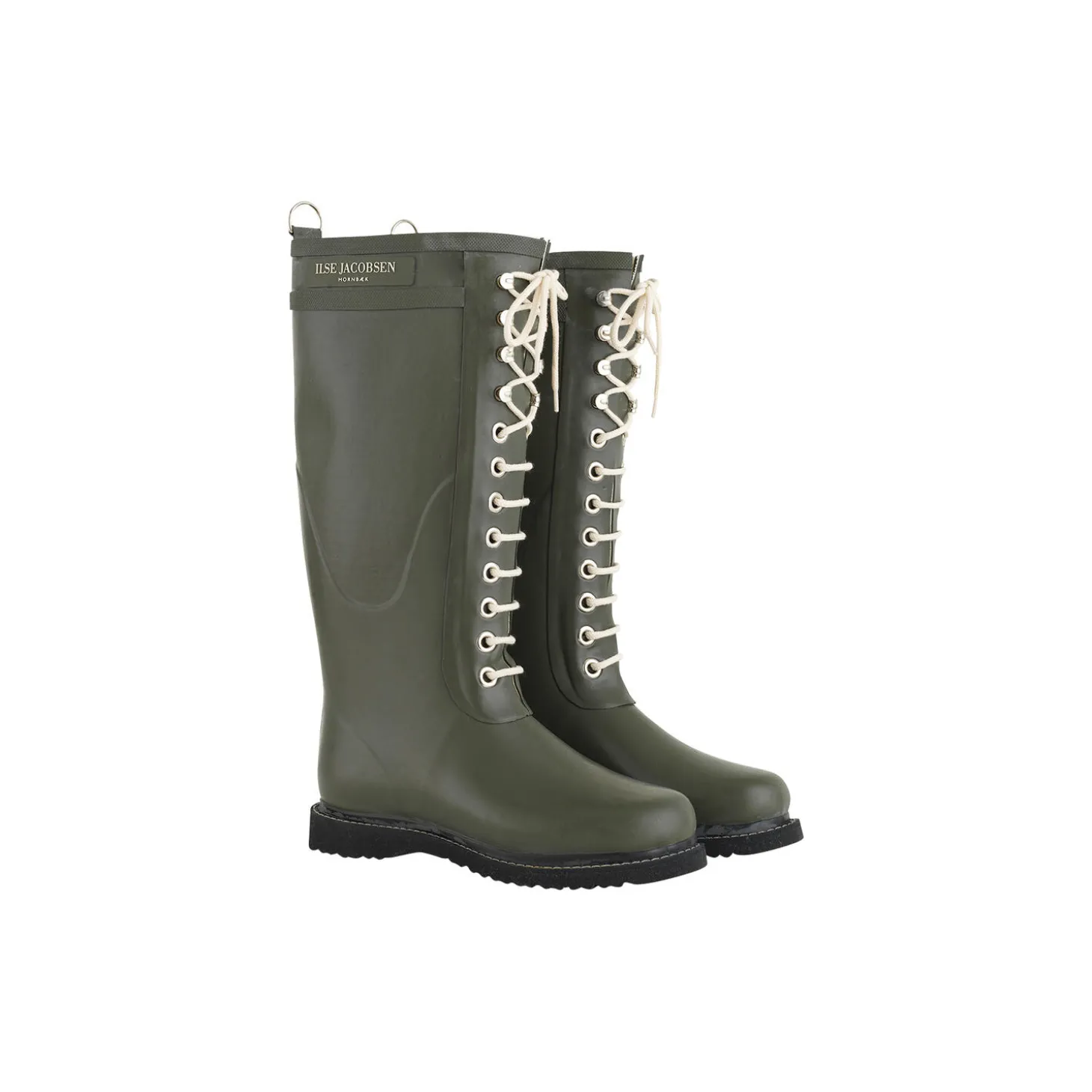 The iconic laced rubber boots by ILSE JACOBSEN HORNBÆK. These knee length rain boots features a decorative D-ring at center back and logo on the shaft. These wellingtons are made of sustainably harvested natural rubber and have been cut by hand. This material can withstand temperatures down to -20 degrees Celsius. The rubber composition is 80% pure, natural rubber and 20% secret formula. Entirely PVC-free, our boots contain no animal by-products. If not treated regularly, natural rubber will develop a white surface over the years. This is simply because the rubber will lose its essential oil. To keep your boots in great condition for many years to come, we recommend that you treat them once a month with our oil. New laces are available in several colours.