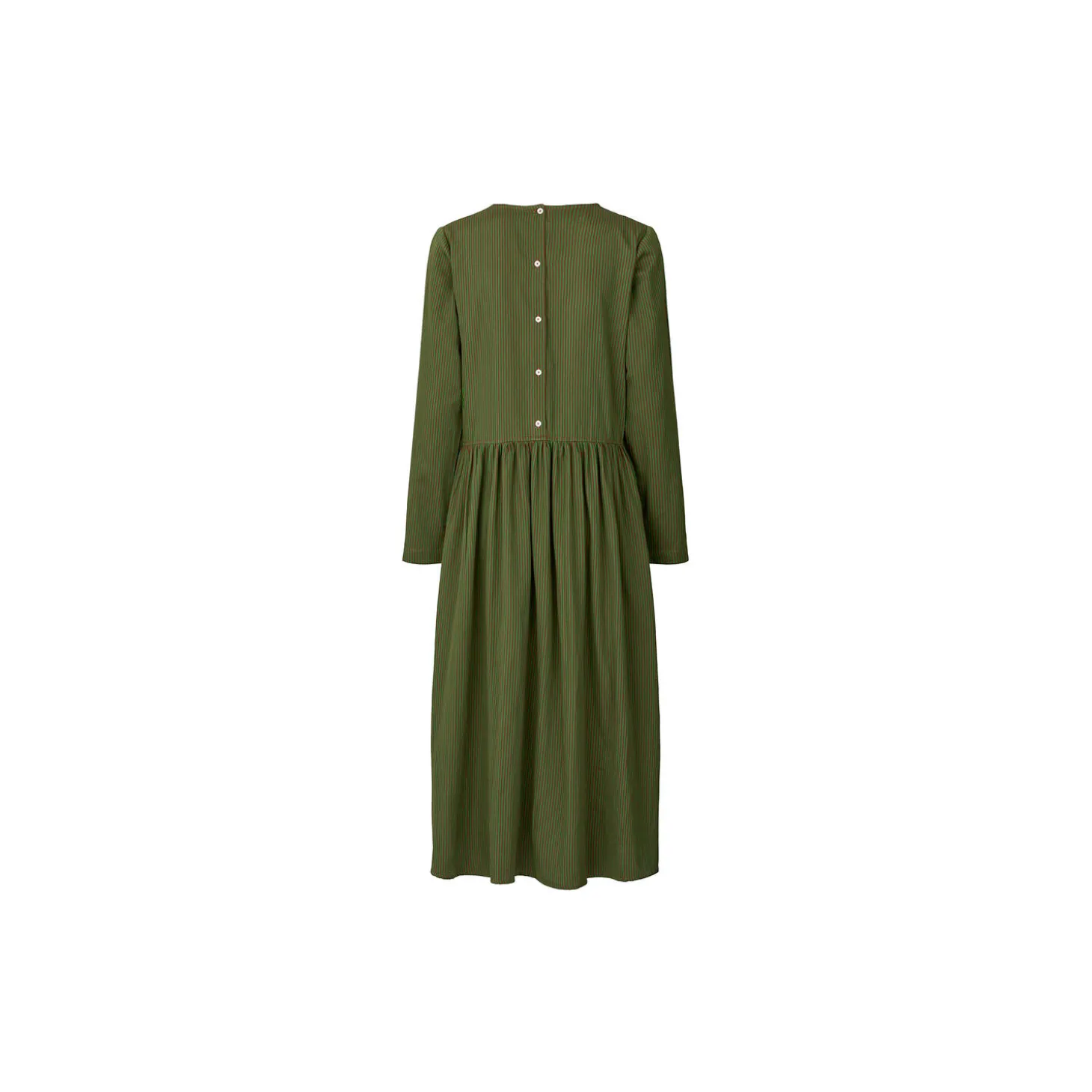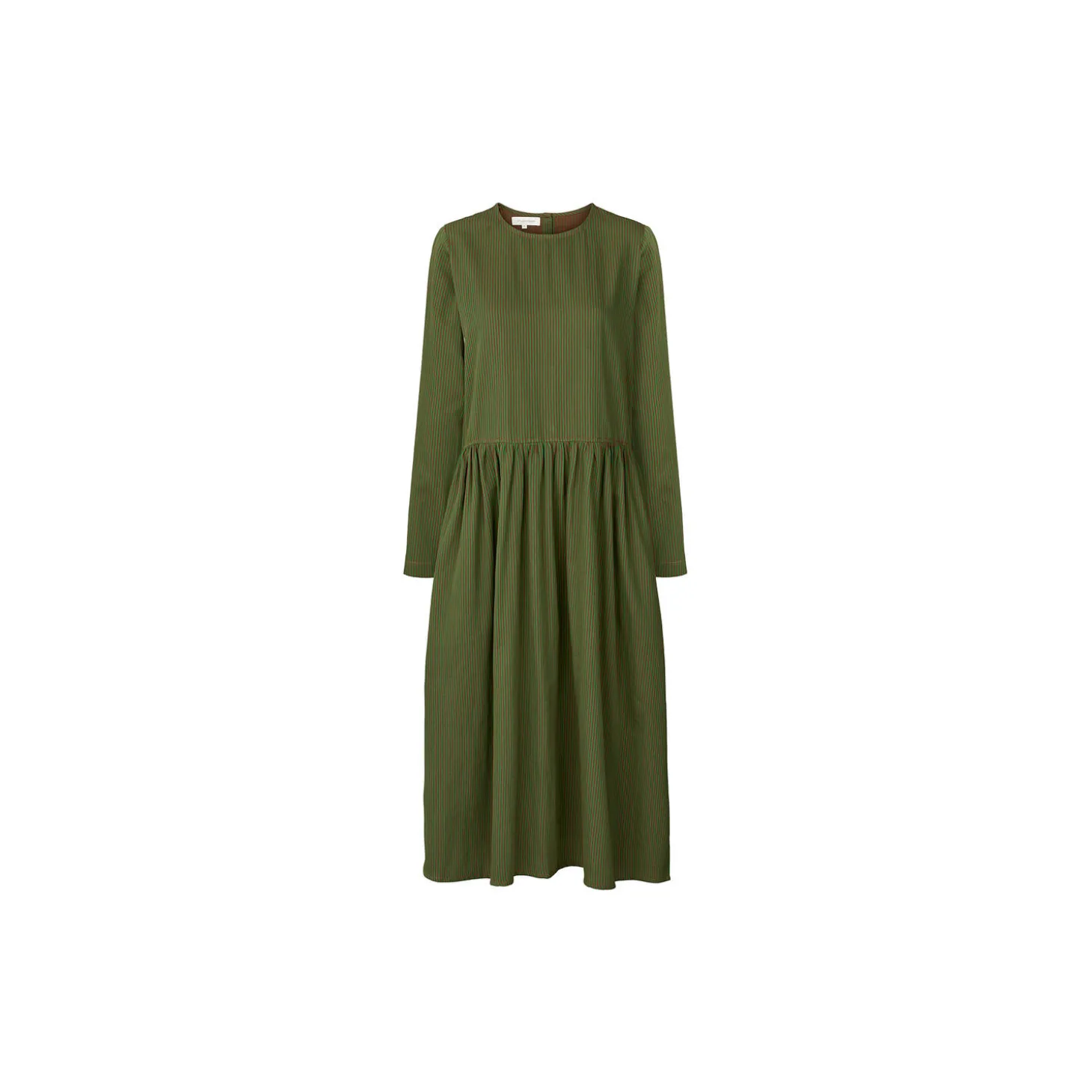 Kjole i 100% økologisk bomuld. Kjolen er baseret på vores populære, ærmeløse Noelle kjole. En rummelig kjole med et løst oversize fit. Overskæring i taljen med små fine rynk og små knapper i ryggen. Kjolen har sidelommer. Alle indvendige syninger er med franske sømme for en delikat og luksuriøs finish. Sammensæt den med sneakers for et cool afslappet look eller til festlige begivenheder med en let ballerina for et stilfuldt lookDette produkt er lille i størrelsen, vi anbefaler at gå en størrelse op.