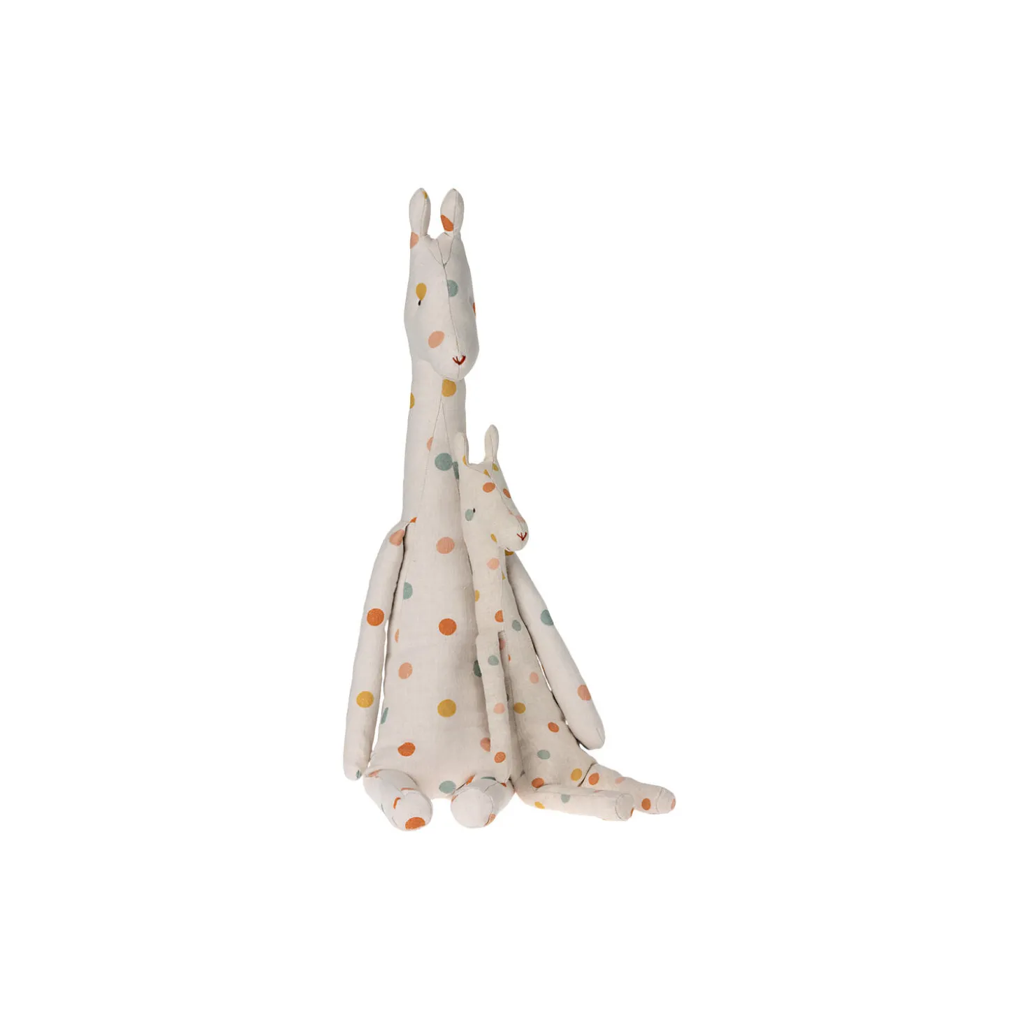 Denne giraf er lavet i blødt hørstof med multi prikket mønster. Den har et sødt udseende og størrelse – en ny bedste ven til de små.