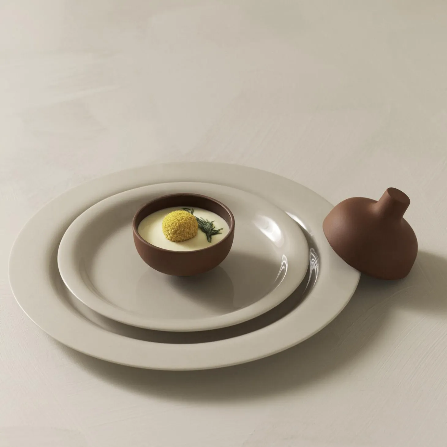 Carina Seth Andersson has once again managed to balance perfection and particularity in her new additions to Sand, her series of stoneware originally conceived for Nationalmuseum in Stockholm. The different objects are abstract yet familiar, alluding to age-old traditions refined to perfection. ‘There is a moment of surprise when you lift the lid,’ says Carina Seth Andersson. ‘The secrets of the chef unveiled! Together these earthenware objects will create a whole little landscape on the table.’ The trend to bring forward a multitude of different dishes for the table certainly does require the stage be set with a variety of vessels. Glazed on the inside, raw but softly polished on the exterior, the three black and clay-colored earthenware canisters are available in three different sizes.