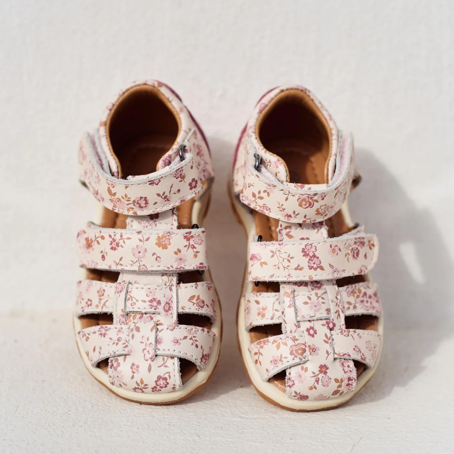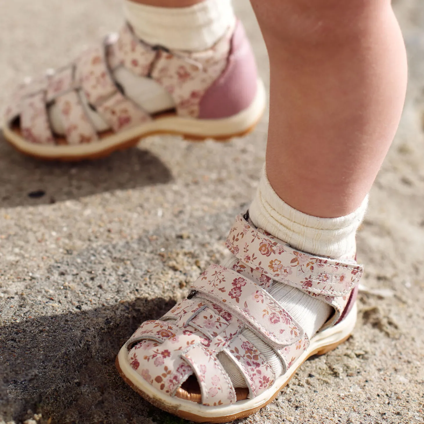 The Frei sandal has two adjustable velcro straps across the foot that make them easy to step into and give them adjustability for the perfect fit. It has a closed toe to offer some extra protection and a closed heal for extra stability. This sandal is made in natural leather tanned in LWG tanneries. To make sure that no toxic materials touch the skin, we have lined our sandals with chrome and metal free leather lining. The insoles are made with latex and covered with chrome and metal free tanned leather. Latex is a natural product that has a lot of bounce for more comfortable steps. The outsole is made of rubber, which is very light and offers great traction and flexibility. The sandals are normal in size.