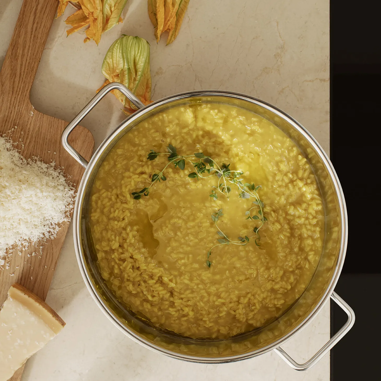 Der er flere grunde til at gribe ud efter en sautergryde af rustfrit stål, når man kaster sig ud i hverdagens madlavning. Den store stegeflade og de høje sider er ideelle til sammenkogte retter, mens hurtig og jævn varmefordeling gør gryden velegnet til at brune, svitse og karamellisere. Overfladen er modstandsdygtig overfor syren i maden og dermed let at holde skinnende. Sautegryden kan anvendes på alle varmekilder og tåler maskinvask.