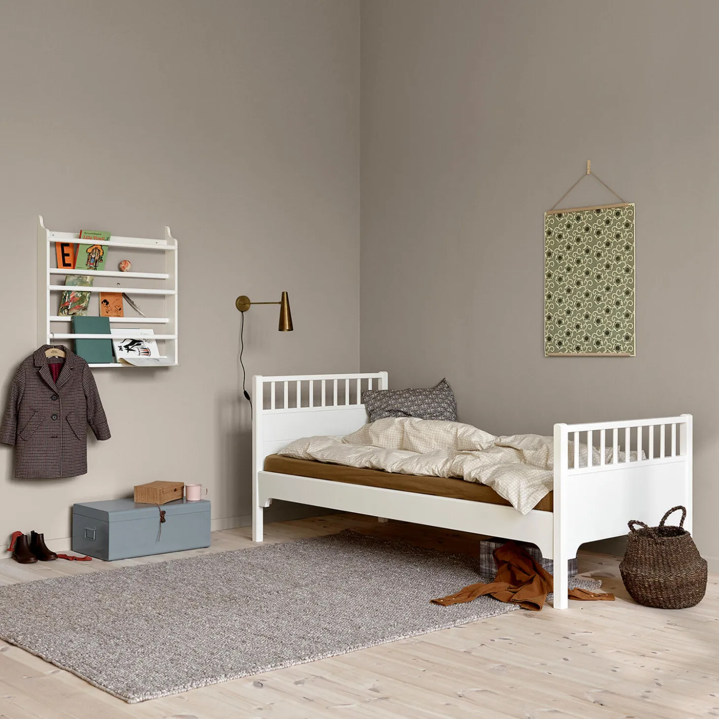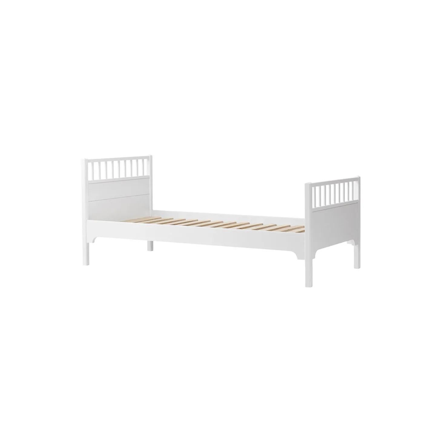 Her er sengen til teenageren eller til det stilfulde gæsteværelse, hvor der skal kræses lidt ekstra for den overnattende gæst.Det klassiske, skandinaviske udtryk giver plads til at kunne sætte sit eget præg på sengen. Om end der skal blomster eller striber på puderne, så følger sengen med og lader teenageren udtrykke sig.Sengens to gavle er asymetriske, og den høje gavl danner et sengegærde, der giver sengen et smukt og luksuriøst udtryk.Sengen er en del af Seaside Classic serien, der er designet i en fin og nordisk stil. Små, enkle detaljer understreger det tidløse design, der passer ind i de fleste hjem.Seaside Classic serien er fremstillet af birketræ og MDF, der er konstrueret træ, der består af 60% birk, 20% fyrretræ og 20% asp træ. MDF er meget stærkt og holdbart.De ikke-synlige skruer giver sengen et rent og eksklusivt design og er særligt kendetegnende for Oliver Furniture. Designet er let og fint og holder fra generation til generation.Serien er produceret i Europa og overholder de strenge EU-krav for sikkerhed og sundhed. Produkterne er malet med ikke-giftig, vandbaseret maling.Bæreevne (statisk vægt): 120 kg