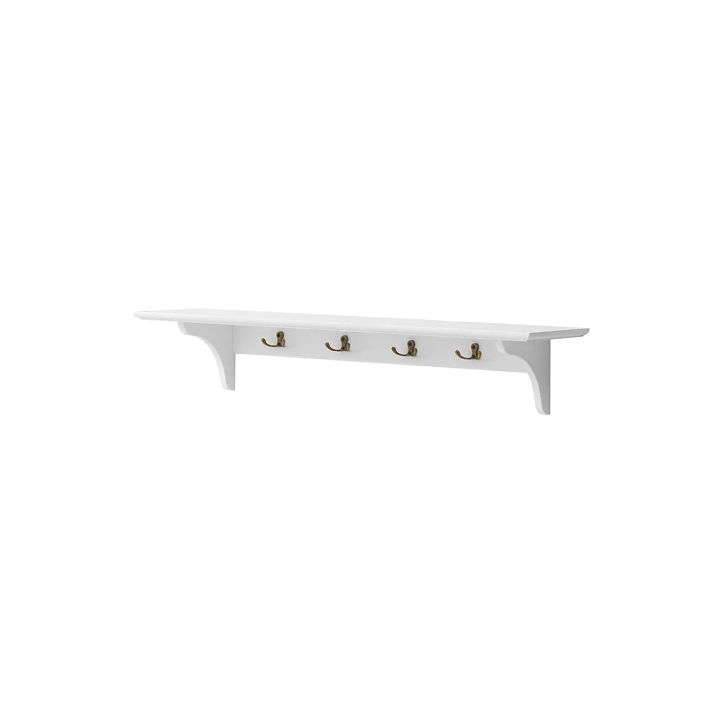 Enkel hylde til børneværelset. Hylderne findes i forskellige længder og dybder, hvilket gør dem interessante at kombinere. Krogene medfølger og kan monteres efter eget valg.Produktet er fremstillet af birketræ og MDF, der er konstrueret træ, der består af 60% birk, 20% fyrretræ og 20% asp træ. MDF er meget stærkt og holdbart.De ikke-synlige skruer giver et rent og eksklusivt design og er særligt kendetegnende for Oliver Furniture. Designet er let og fint og holder fra generation til generation.Produktet er produceret i Europa og overholder de strenge EU-krav for sikkerhed og sundhed. Produktet er malet med ikke-giftig, vandbaseret maling.