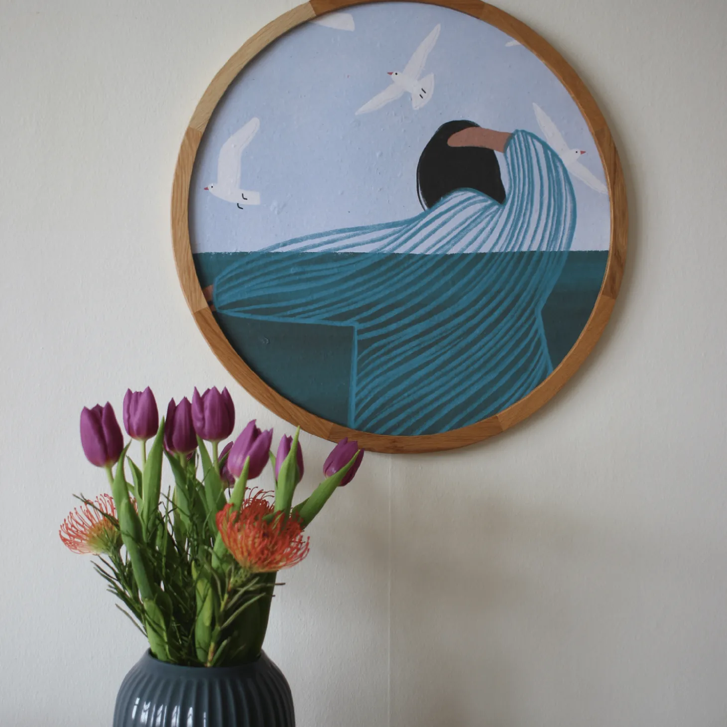 - Materiale: håndlavet cirkulært kunsttryk i egetræsramme