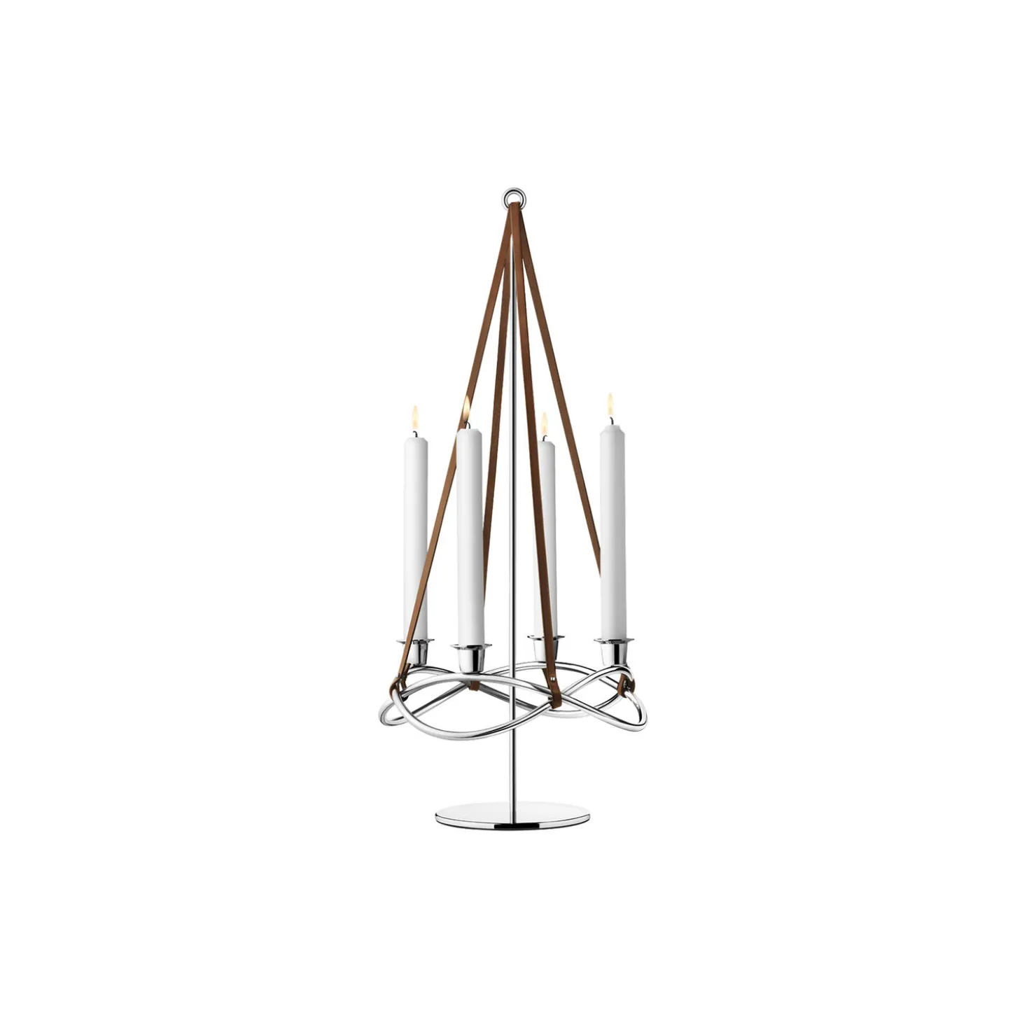Gør din jul endnu mere julet med den smarte forlænger til adventsstagen Season. Det er let at sætte de fire læderstroppe på adventsstagen og det medfølgende ophæng, og resultatet løfter – bogstavelig talt – din juledekoration til nye højder. Formen på den fritsvævende adventskrans minder umiskendeligt om et juletræ, og den bløde bevægelse, når kransen duver fra side til side, kaster smukke skygger ud i rummet.