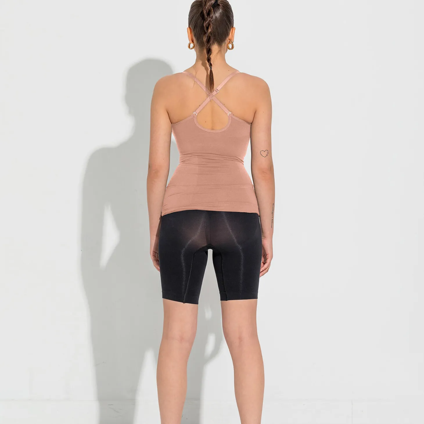 Support level: StrongShaping Cami Top med justerbare skulderstropper – Et essentiel wardrobe item. Perfekt til både hverdag og fest.Funktionalitet og egenskaber:Justerbar skulderstroppe: Tilpas efter behov for maksimal komfort. De aftagelige stropper på ryg giver flexibilitet til at krydse og designe dit edelig look så ryggen matcher dit ønske. Bryst-zone: indbygget plads til barmen. Giver naturlig støtte. ingen irriterende sømme eller mærker. Ryg-zone udskæring med kompression zones der skaber en udglattende effekt omkring ryg og over BH kanter. Tummy Kompression Zone: Via en særlig strikke teknik har vi skabt kompression zoner hen over talje, mave og lænden. Dette skaber udglattende effekt og høj komfort.Åndbarhed: vores garner er nøje sourcet fra vores leverandør i Italien. Garnet er spundet med optimal fokus komfort og åndbarhed. LYKKELAND atelier seamless SHAPEWEAR produkter: Shapewear fra LYKKELAND ateliér er yderst komfortable samtidig med at det er super funktionelt. Shaping Produkterne knus-krammer kærligt din krop og dine naturlige kurver, og skaber en visuel glattere contour når du har produkterne på. Støtte og løft til bryst og baller. Udglattende effekt på ryg og mave. Anti elektrisk og perfekt under alle dine outfits – kan anbefales at styles under produkter der er lavet af tyndt stof der normalt vil klistre mod din hud. Oplev optimal pasform af dine yndlings outfits når du har LYKKELAND atelier shaping produkter herunder. Oplev også yderst behagelig støtte og support ved ekstrem “blød” hud, mummy tummies og overskydende hud ved vægt tab.How to wear: Når du påfører dig shapewear – skal du ALTID tage produktet på nedefra – også ved denne Cami Top. Når du påfører produktet skal fødderne først, et ben af gange, træk produktet op til henover knæ og lår og træk derefter med samme forsigtighed som når du påføre dig nylon strømper. Når du har fået produktet på kan du med fordel rette på barm under shapewear så du føler den helt rigtige komfort og støtte. Vaske anvisning: Vaskes på 30 grader. Vaskes med vrangen ud, meget gerne i vaskepose. Undgå tørretumble, samt skyllemiddel for længere holdbarhed af dine LYKKELAND ateliér shaping produkter. Materialet: High-end Italienske garner produceret i Italien, 80% polyamid 20 % ElastaneProduceret i Tyrkiet