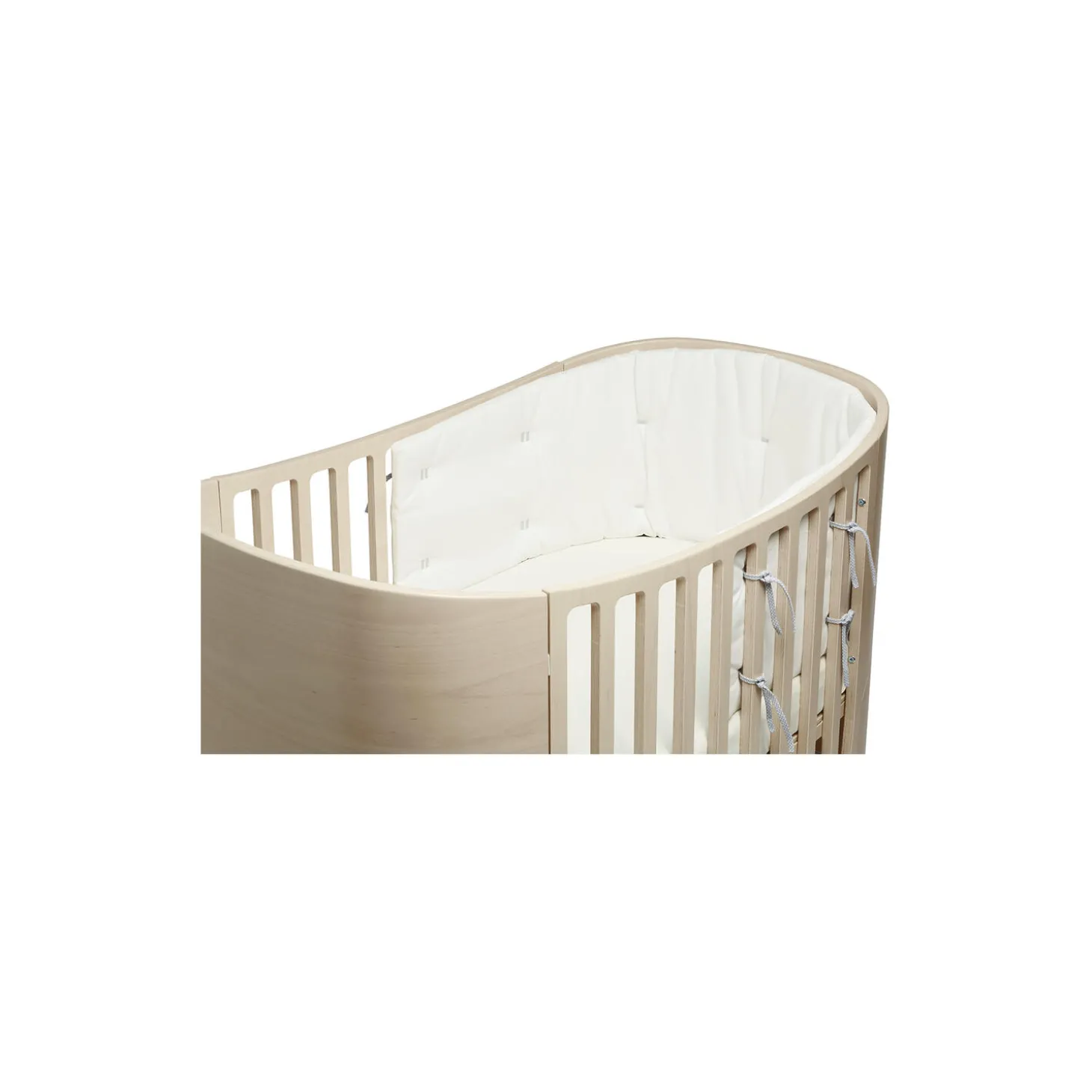 Skab en blød og hyggelig stemning i Leander Classic™ babysengen med en Leander sengerand. Den bløde sengerand beskytter dit barn mod små bump, træk og udefrakommende støj og stimuli. Dette skaber en følelse af tryghed og ro, som vil gøre det lettere for dit barn at falde i søvn. Sengeranden er skræddersyet til Leander Classic™ babysengen og følger derfor sengens buede form.Det kraftige lærredsstof er lavet af økologisk bomuld, og fordi polstringen består af luftig fleece, forbliver sengen åndbar. Sengeranden dækker kun halvdelen af sengens omkreds. På den måde sikres der en god luftgennemstrømning og en naturlig regulering af sengens temperatur.Du kan bruge to sengerande i sengen, hvis du ønsker beskyttelse hele vejen rundt. Sengranden fastgøres sikkert og nemt med bindebånd og kan placeres efter behov. Leander Classic™ babysengens bund kan indstilles på to måder, og sengeranden kan bruges i begge indstillinger.