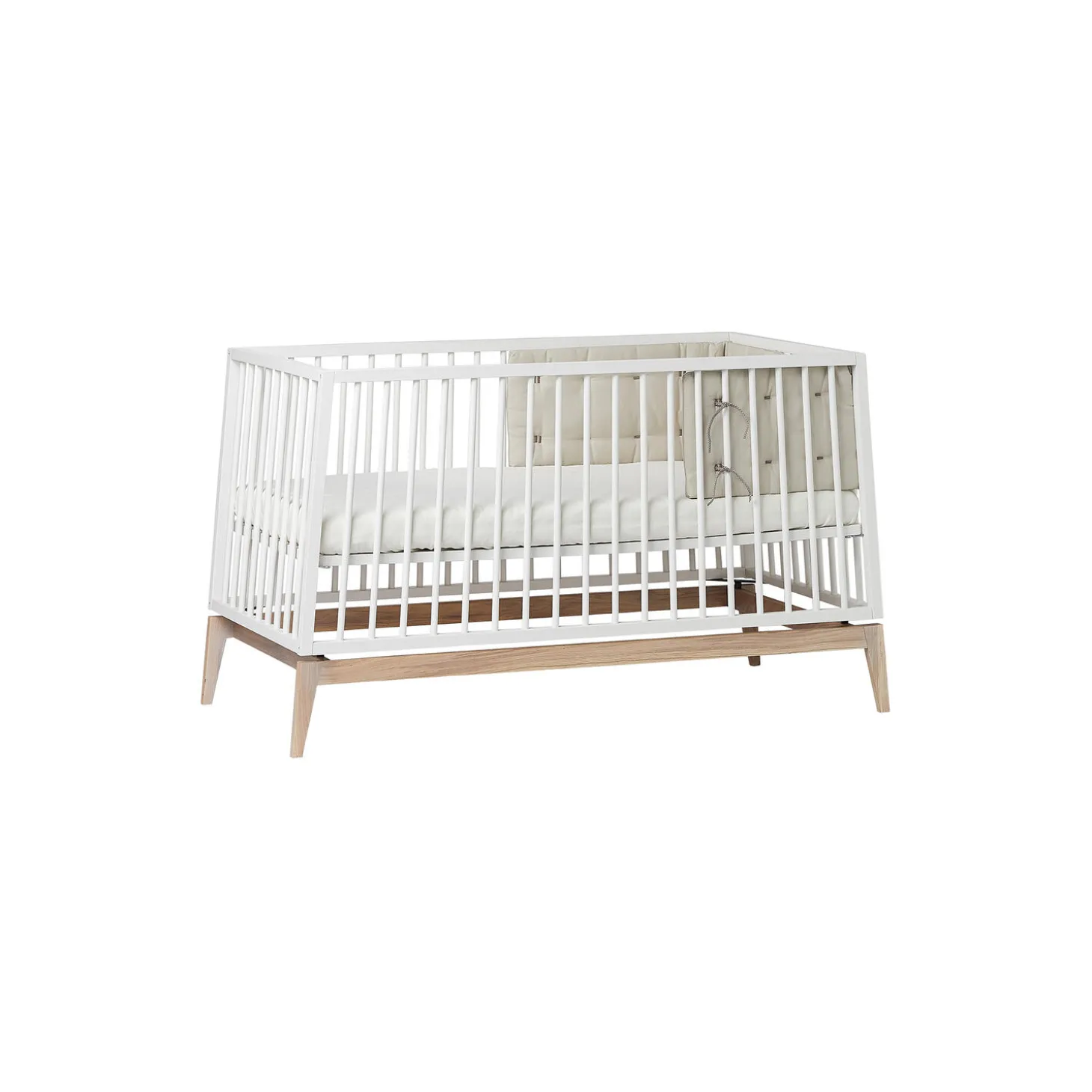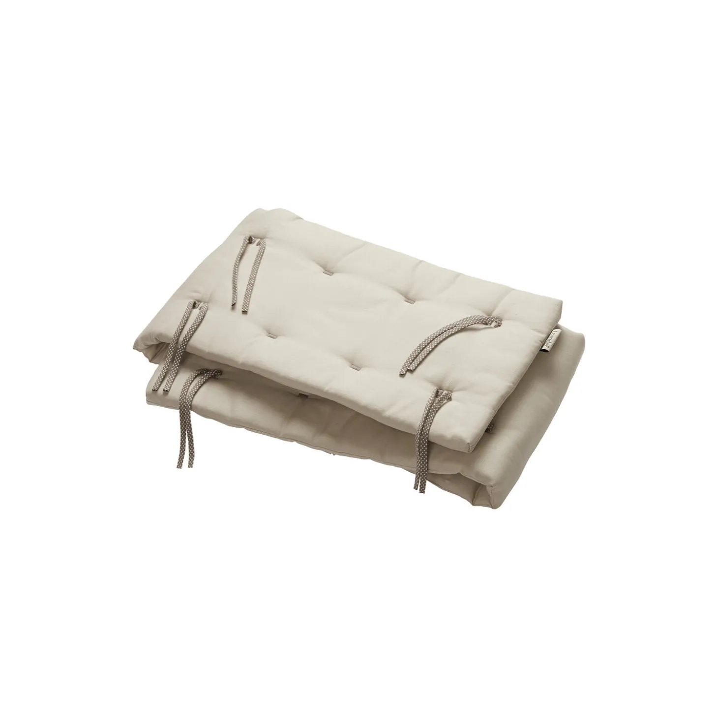 Skab en blød og hyggelig stemning i Leander Luna™ eller Leander Linea™ babysengen med en Leander sengerand. Den bløde sengerand beskytter dit barn mod små bump, træk og udefrakommende støj og stimuli. Dette skaber en følelse af tryghed og ro, som vil gøre det lettere for dit barn at falde i søvn.Det kraftige lærredsstof er lavet af økologisk bomuld, og fordi polstringen består af luftig fleece, forbliver sengen åndbar. Sengeranden dækker kun halvdelen af sengens omkreds. På den måde sikrer du, at der er en god luftgennemstrømning og en naturlig regulering af sengens temperatur.Du kan bruge to sengerande i sengen, hvis du ønsker beskyttelse hele vejen rundt. Sengranden fastgøres sikkert og nemt med bindebånd og kan placeres efter behov. Bunden på de to Leander babysenge kan indstilles på to måder, og sengeranden kan bruges i begge indstillinger. Sengeranden passer til Leander Luna™ eller Leander Linea™ babysengen men kan også bruges i andre senge, der har samme mål.