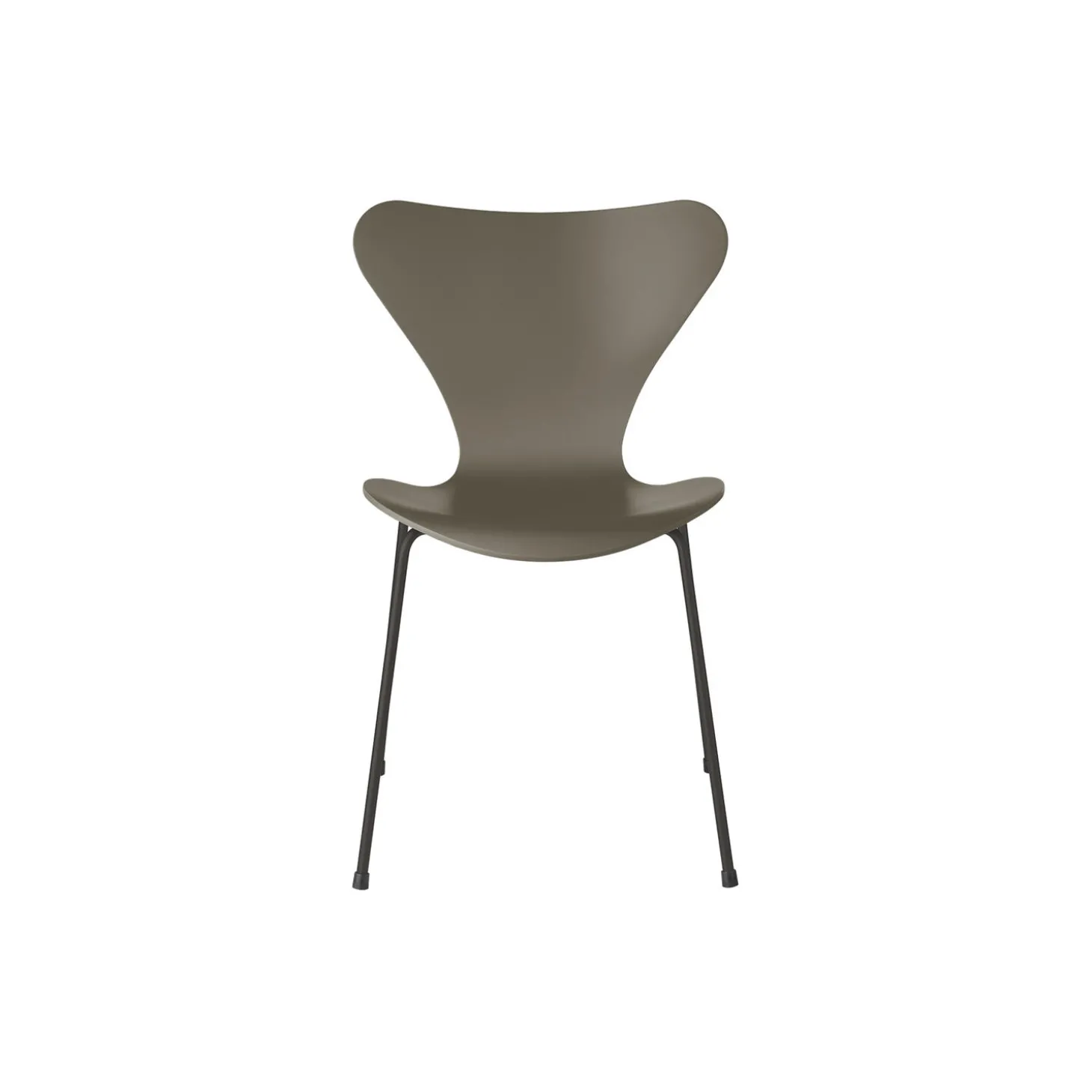 Serie 7™ 3107 fuldlakeret stol i lakeret finér og stel i pulverlakeret stål fra Fritz Hansen. Farve: olive green/warm graphite. Mål: H: 82 x B: 50 x D: 52 cm. Siddehøjde: 46 cm. Design: Arne Jacobsen.