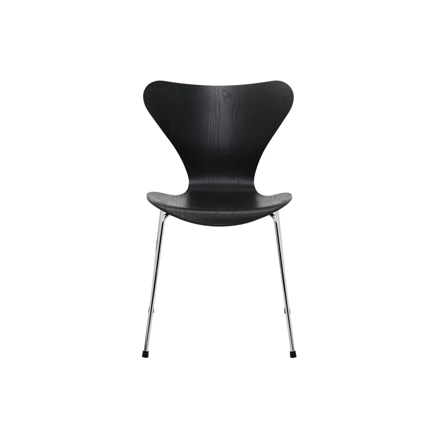 Serie 7™ 3107 stol med skal i farvet ask og stel i forkromet stål fra Fritz Hansen. Farve: sort. Mål: H: 82 x B: 50 x D: 52 cm. Siddehøjde: 46 cm. Design: Arne Jacobsen.