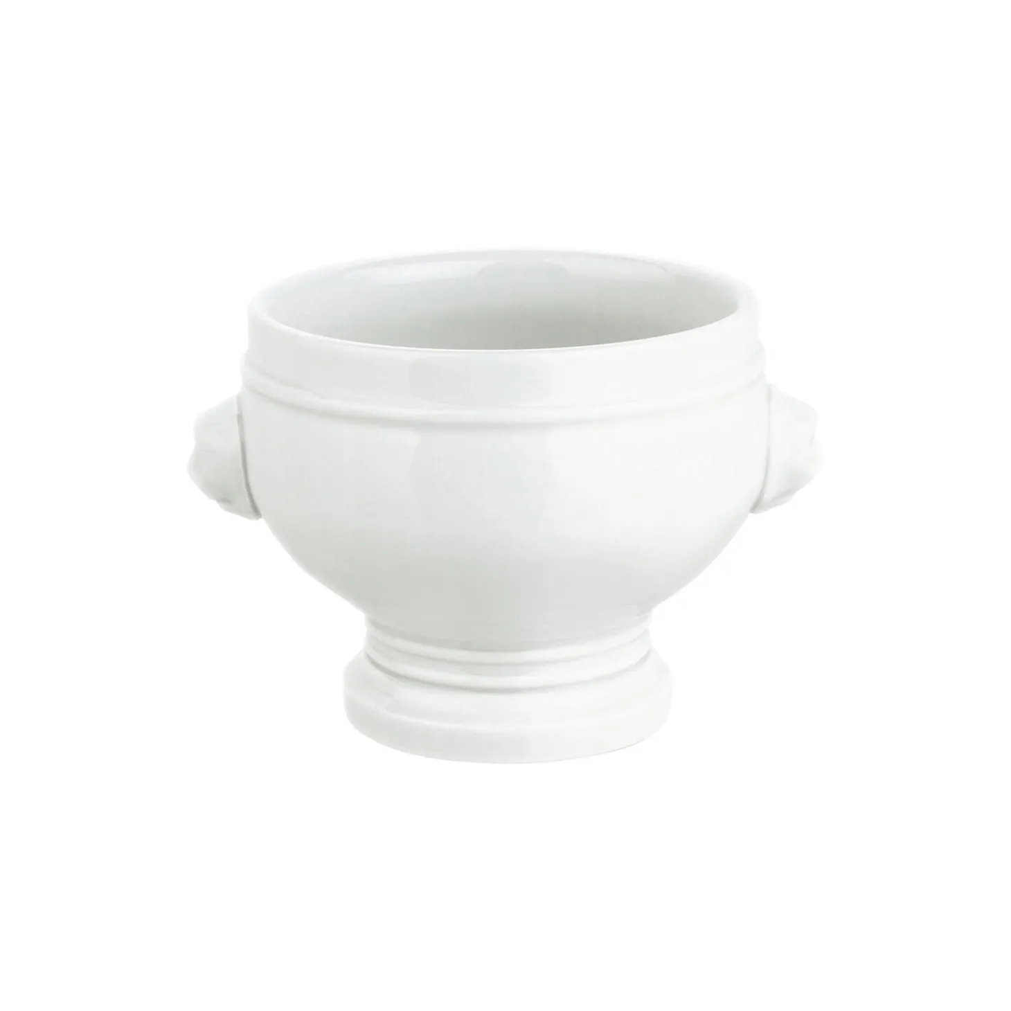 Pillivuyts klassiske hånddrejede suppeskål med løvehoveder som hanke, der kan indeholde 50 cl.