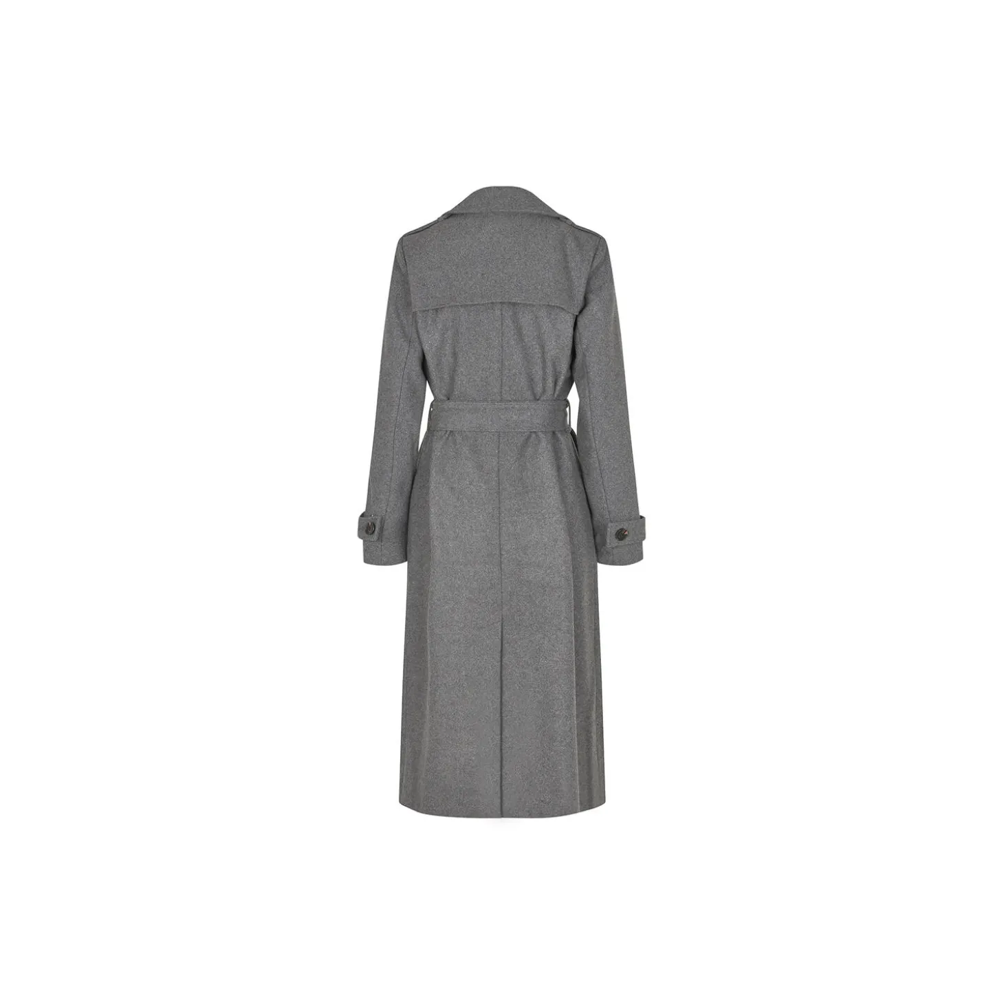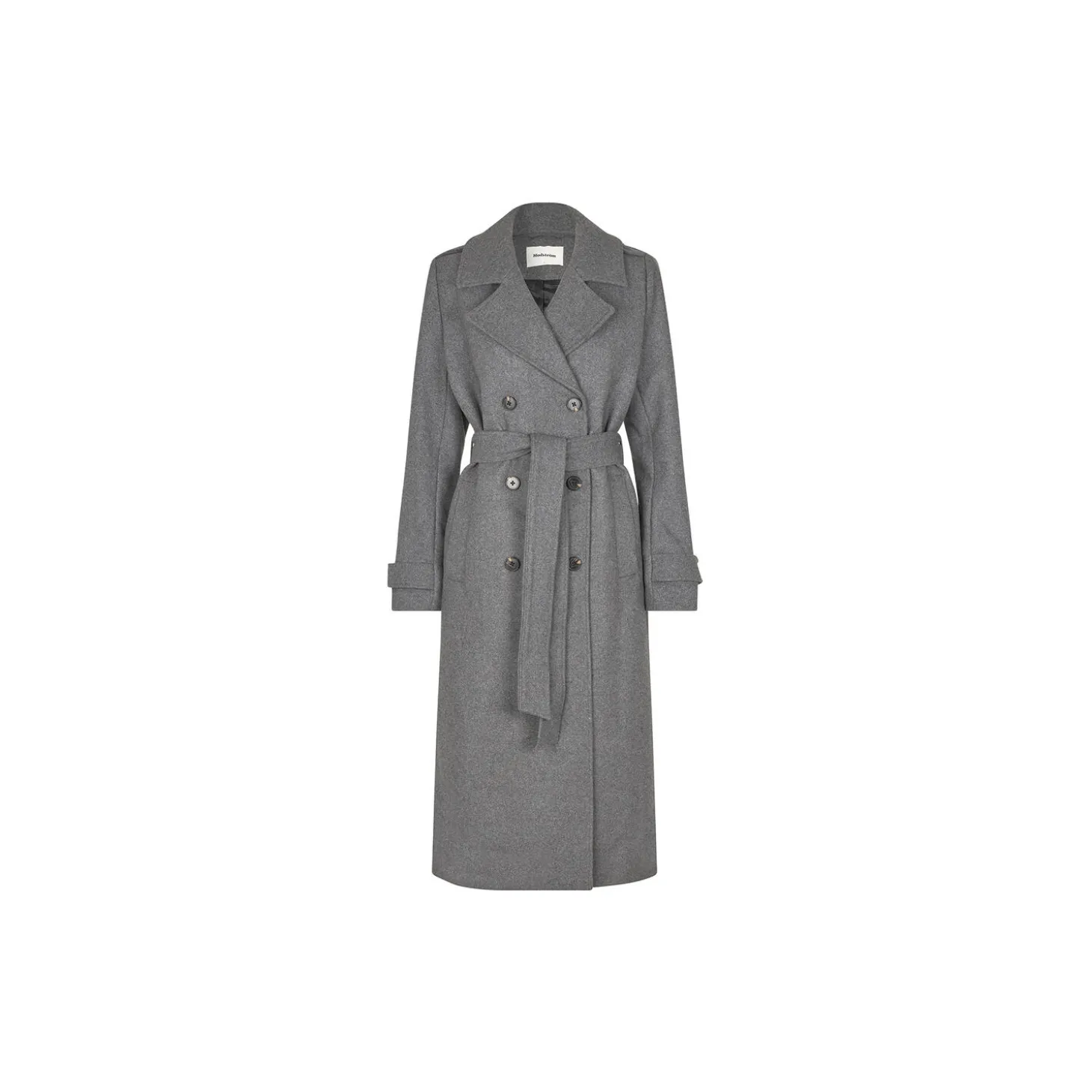 Klassisk, dobbeltradet uldfrakke med krave og revers. ShayMD coat har bredt taljebælte, skulderstropper, brede manchetter og stormflap. Med for og slids bagpå.