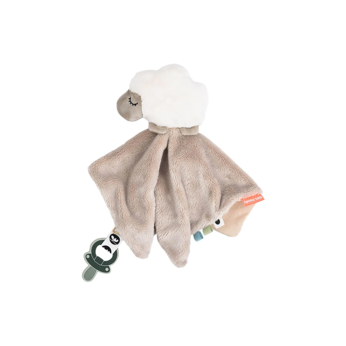 • Sensoriske elementer som forskellige teksturer og farvede tags vil stimulere dit barns sanser• Blød og behagelig for små hænder at holde fast i og kramme• Velcro-clips sørger for at holde en sut i nærheden• Perfekt til en rejse til drømmeland eller udflugt til nye steder• Fin sandfarve nusseklud med Sheepy• Lad en Deer friend trøste dit barn