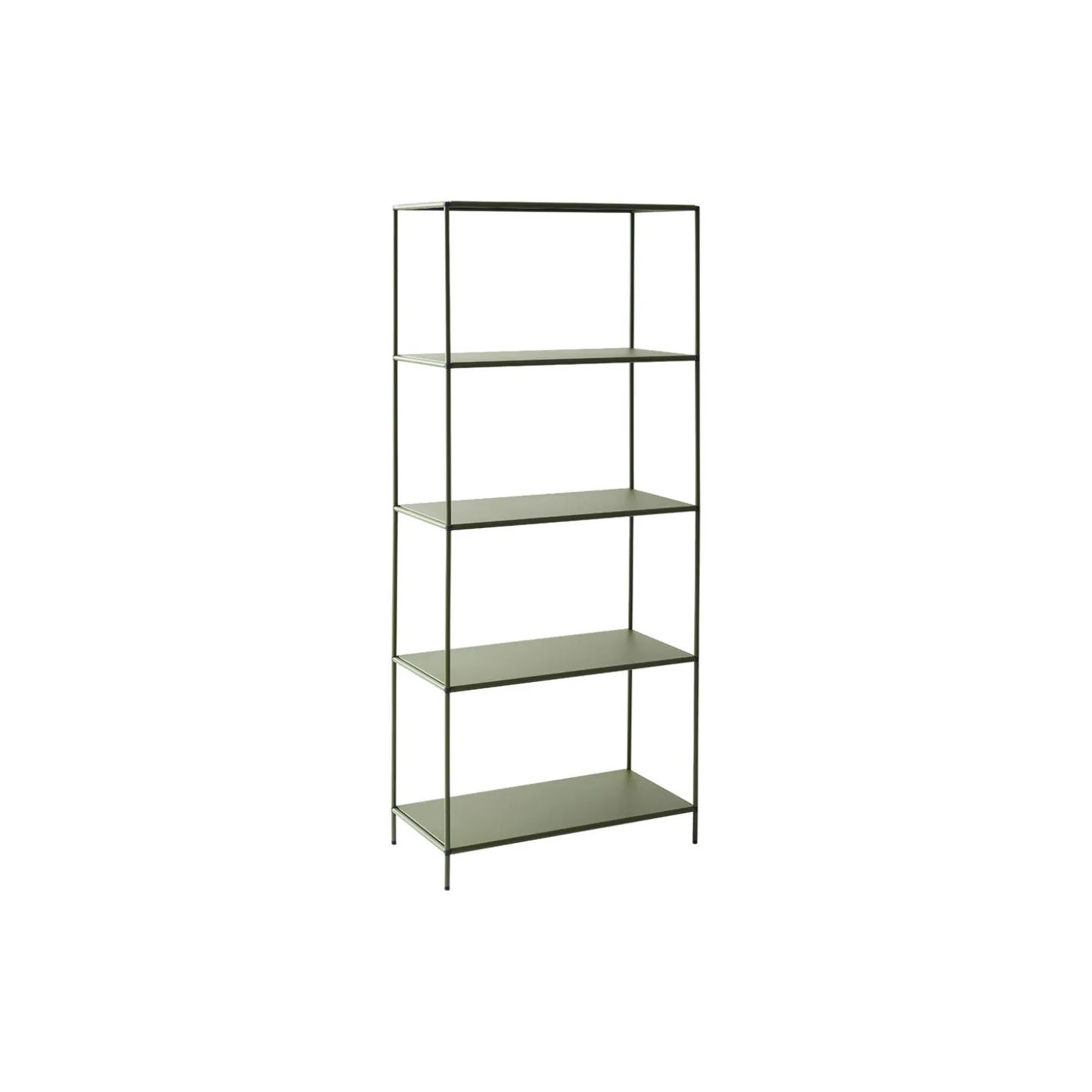 Shelf High i pulverlakeret stål med hylder i metal fra Abstracta® System. Farve: green. Mål: H: 169 x L: 73 x D: 36 cm. Design: Poul Cadovius.