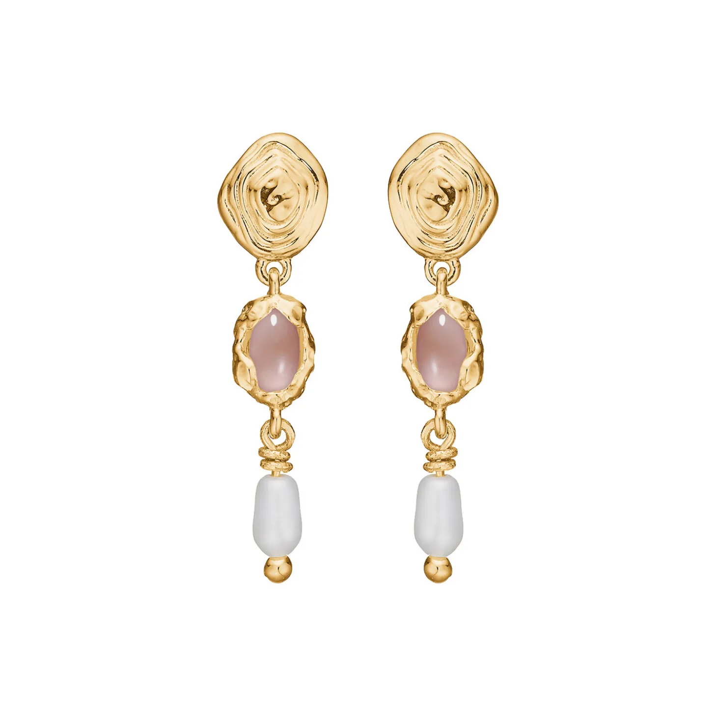 Sølv forgyldtørestik Shell perle og rosa zirkonia fra Studio Z.
