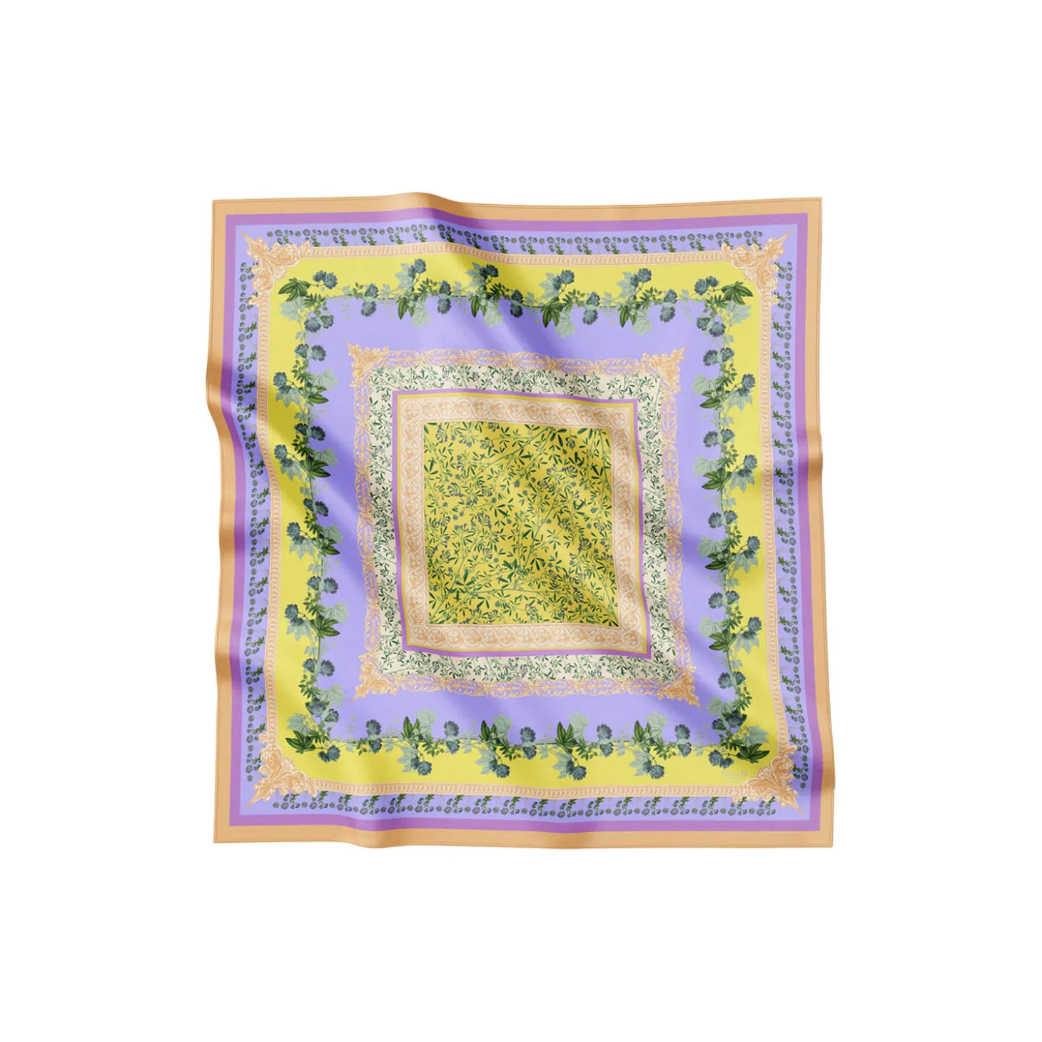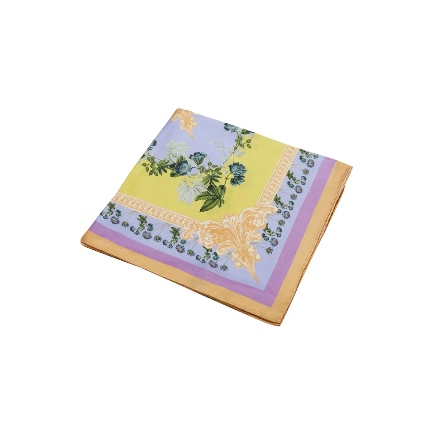 Sherbert Garden scarf er et kvadratisk stort silketørklæde i de smukkeste pastelfarver. Tørklædets eksklusive design er med inspiration fra Flora Danica’s smukke blomsterillustrationer. Tørklædet er lavet af 100% silketwill med håndrullede kanter, hvilket giver et eksklusivt udtryk. Udover det smukke udseende er tørklædet lavet i den fineste silkekvalitet, som sikrer, at det både er blødt, åndbart og behageligt at have på. Dets kvadratiske form, giver rig mulighed for mange forskellige stylingsmuligheder. Silketørklædet er en oplagt gaveidé.