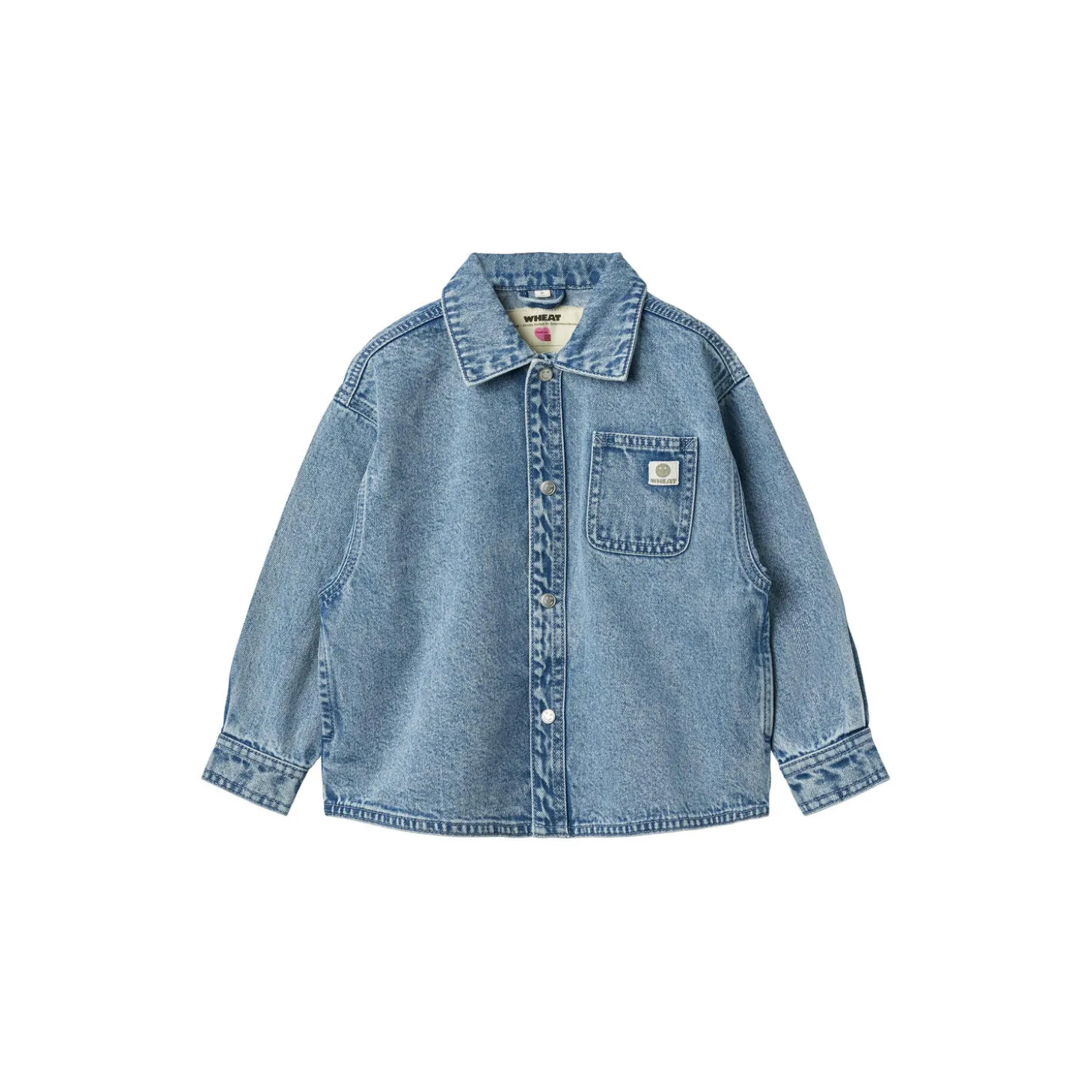 Wheat x Pernille Teisbæk for Børnecancerfonden’ is a limited edition collection of unisex children’s clothing – all profits go to the Danish Childhood Cancer Foundation—Unisex shirt in washed denim with a cool oversize fit, smiley press buttons and breast pocket. A durable everyday classic that can be used across the seasons and easily styled up or down for everyday use or special occasions.—- Standard 100 by OEKO-TEX®- 100% organic cotton