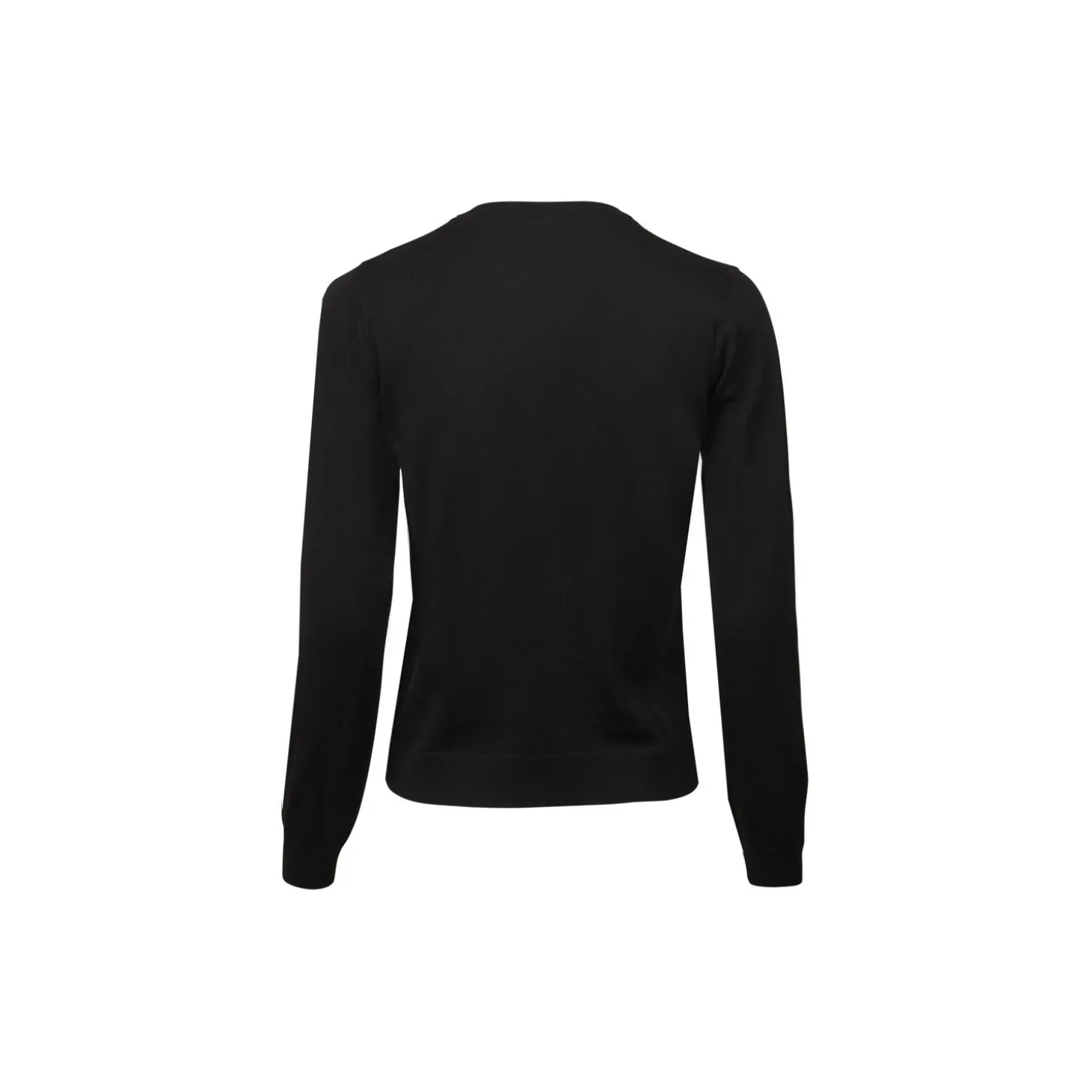 Denne cardigan er fremstillet i merinould og har perlemorsknapper, ribstrikket krave, manchetter og kant forneden.