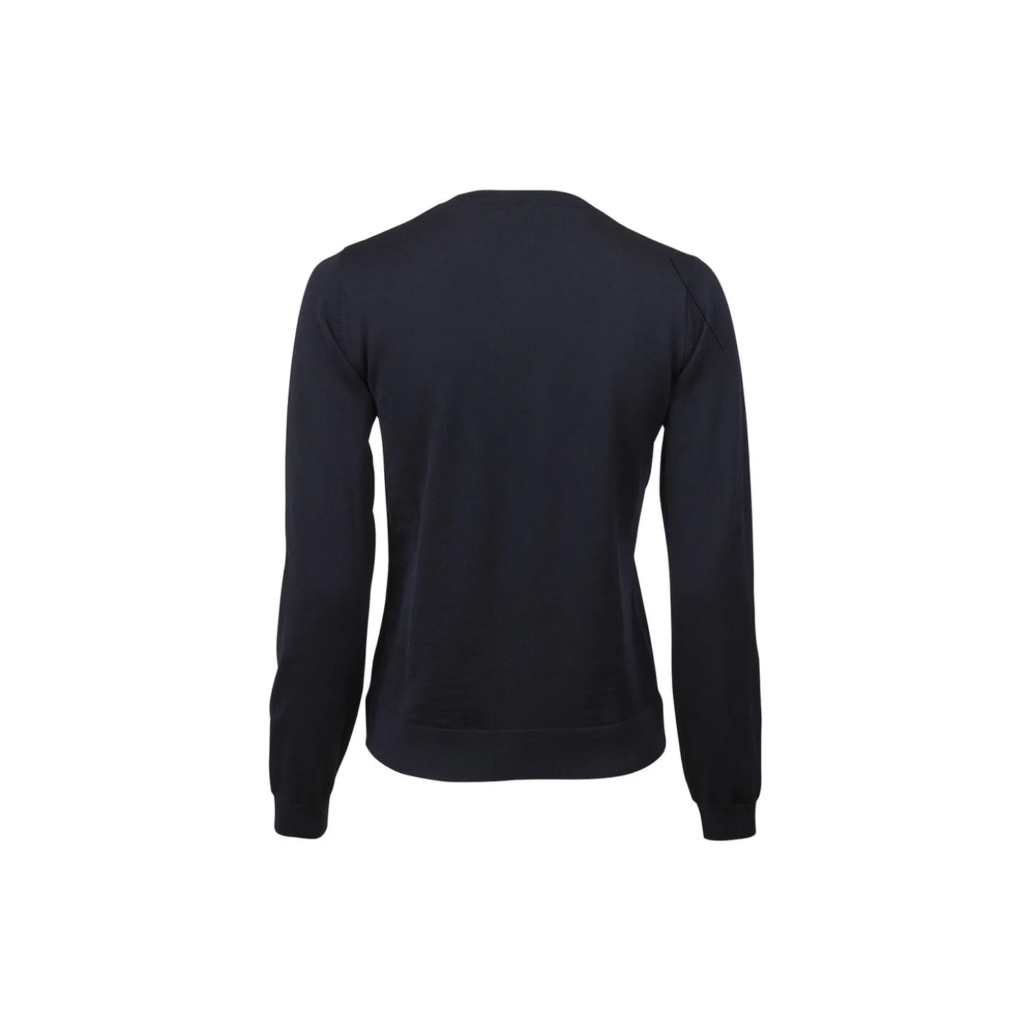 Denne cardigan er fremstillet i merinould og har perlemorsknapper, ribstrikket krave, manchetter og kant forneden.