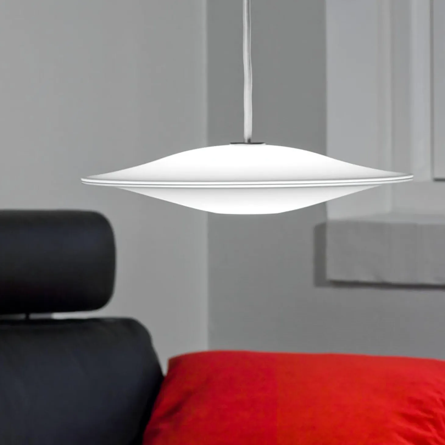 A tribute to the Sine Curve 1967. Poetry in glass, the Sinus lamp was originally designed in 1967 and attempted to be made in plastic. But Piet Hein himself was not satisfied with the result until he saw it in glass. The floating shapes of the Sinus lamp epitomize the clean, Scandinavian lines that we know from the golden age of design. The sine curve was chosen as inspiration because it is a mathematically harmonious shape, but also because it is technically ideal for lighting. The lamp’s curved shapes ensure that the light is strong on exactly what needs to be illuminated, while the light towards the eye and the surrounding space is glare-free and exceptionally beautiful.