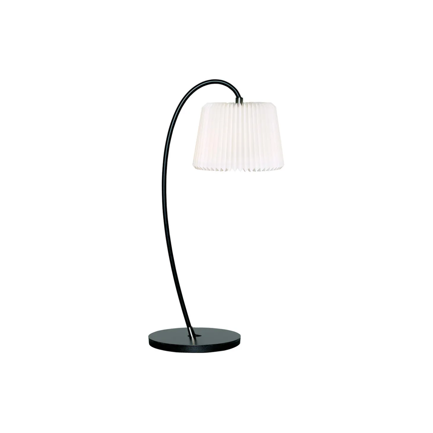 Snowdrop bordlampe i metal og håndfoldet plast fra LE KLINT. Farve: sort/hvid. H: 54 x Ø 20 cm. Lyskilde: maks. 25W E27. Design: Harrit-Sørensen + Samson.