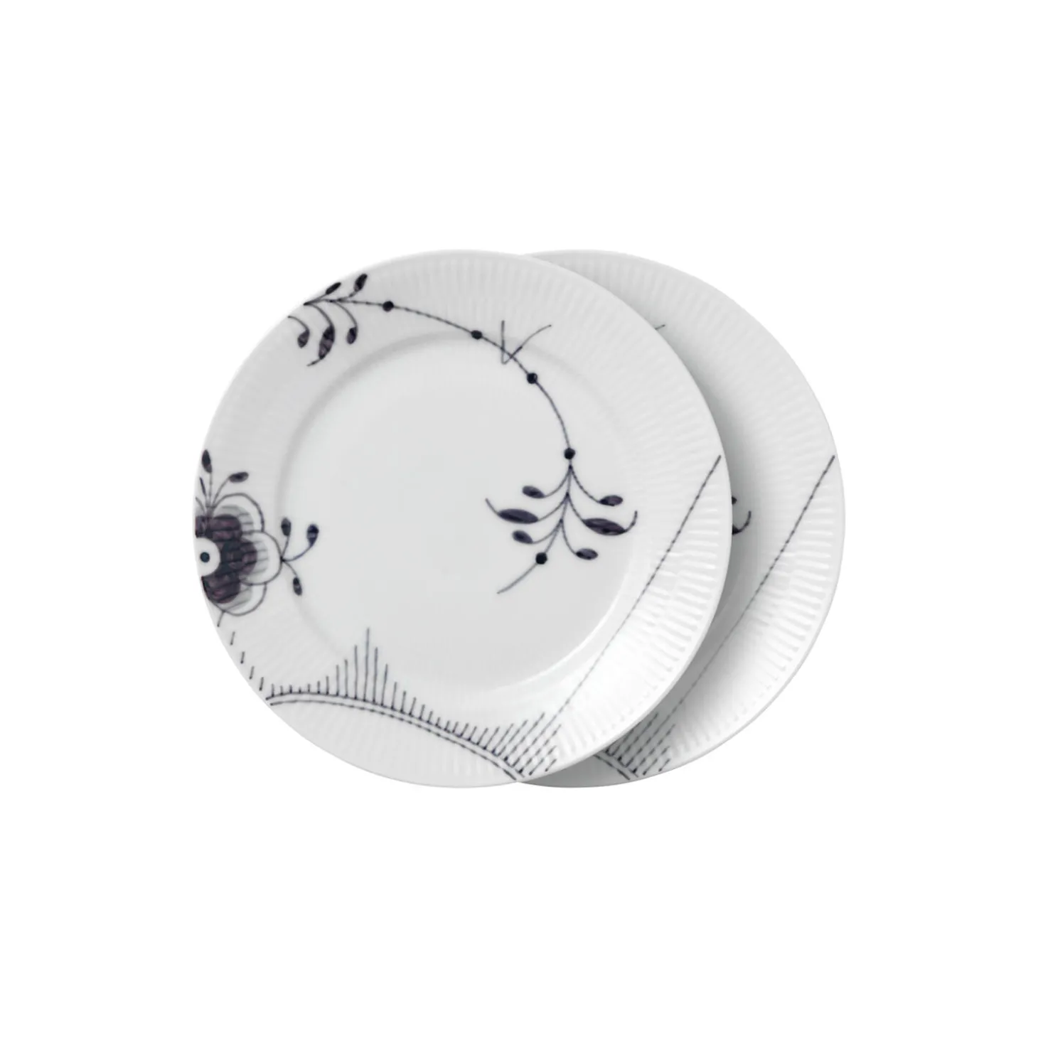 Denne tallerken på 22 cm er håndmalet med Sort Mega Riflet Dekoration Nr. 2, hvor en stiliseret palmette skaber et monokromt udtryk mod det hvide porcelæn. Sæt tallerkenen sammen med tallerkener med Sort Mega Riflet Dekoration Nr. 6 eller steldele fra andre Royal Copenhagen stel for et personligt touch til kaffebordet og middagsbordet. Sort Mega Riflet er et smukt bevis på, at selv de mest klassiske traditioner kan tåle at blive udfordret – med skønhed som resultat. Stellets karakteristiske mønster af sorte og grå håndmalede nuancer indkapsler en dramatisk, monokrom kontrast til de hvide porcelænsoverflader. I Royal Copenhagens blå univers er Sort Mega Riflet et strejf af sofistikeret coolness.
