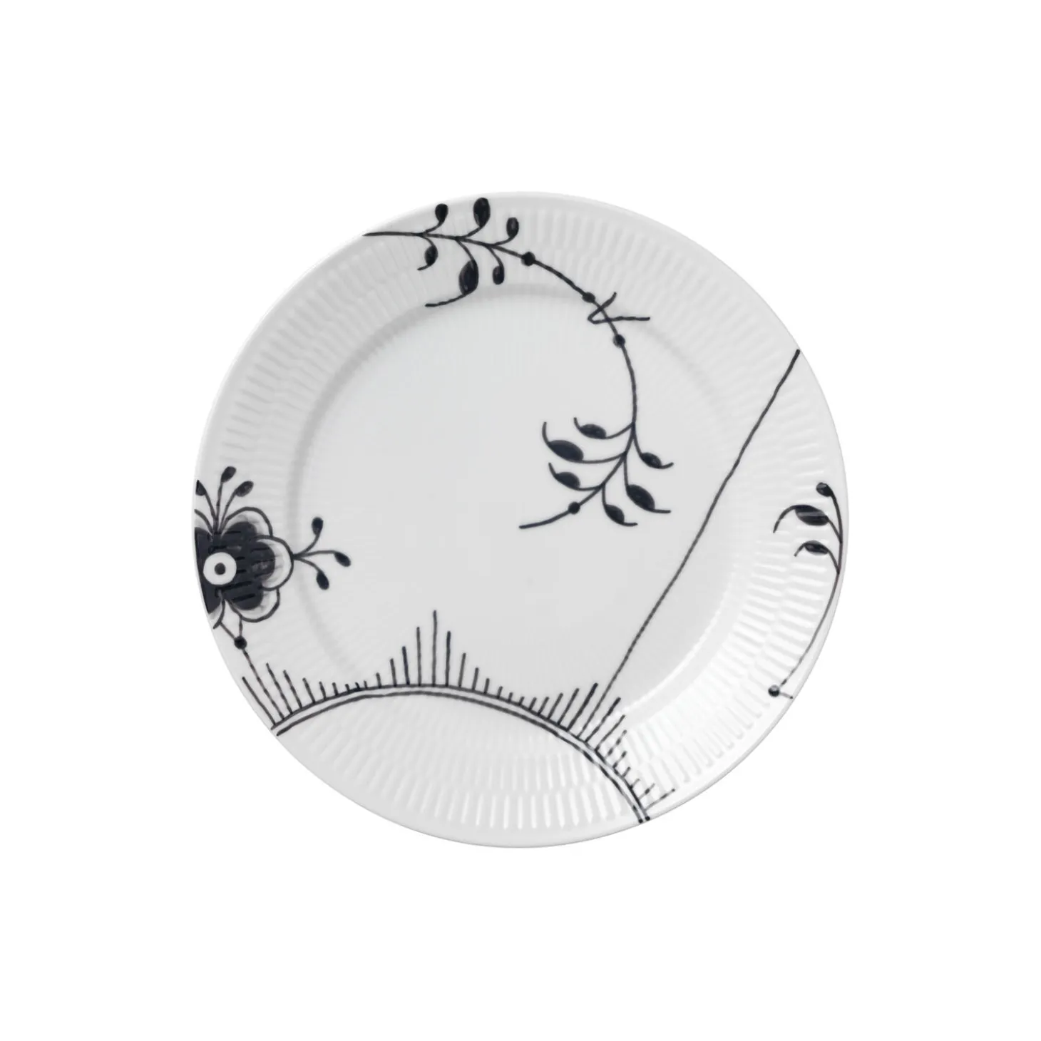 Sort Mega Riflet middagstallerken i porcelæn fra Royal Copenhagen. En elegant, håndmalet palmette snor sig på denne Sort Mega Riflet Tallerken på 27 cm og mødes af stringente linjer, der danner en smuk halvmåne. Skab et personligt udtryk ved at kombinere denne tallerken med Sort Mega Riflet Dekoration Nr. 2 med andre tallerkenstørrelser med Sort Mega Riflet Dekoration Nr. 6 eller et af Royal Copenhagens øvrige stel. Tallerkenen er nyttig som middagstallerken eller som et iøjefaldende serveringsfad.