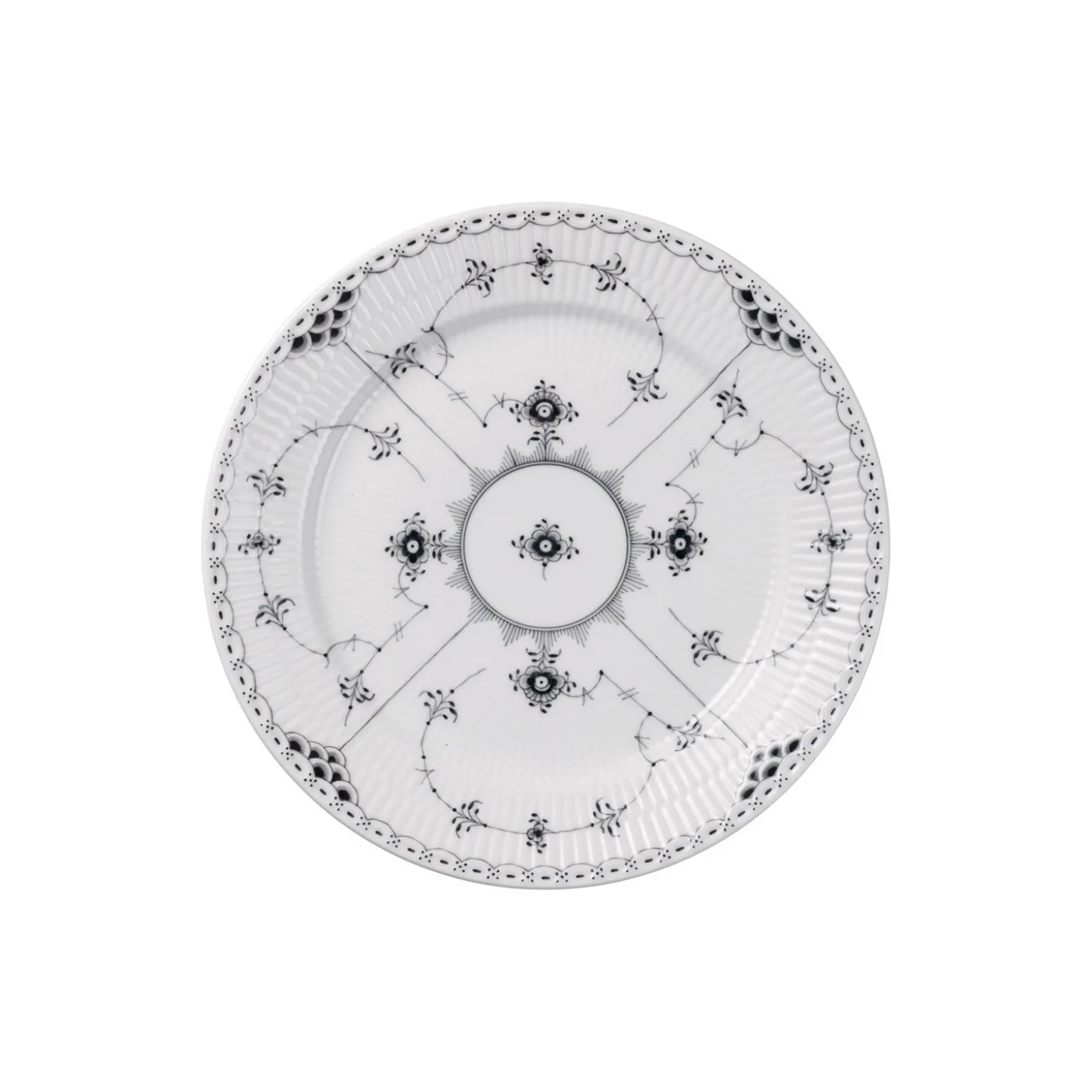 Delikate håndmalede palmetter og stiliserede blomster pryder overfladen af denne Sort Musselmalet Halvblonde tallerken. Den sortes dristighed blødgøres af mønsterets elegance. Med en størrelse på 27 cm, er denne tallerken et perfekt valg til middag, både til hverdag og særlige lejligheder.