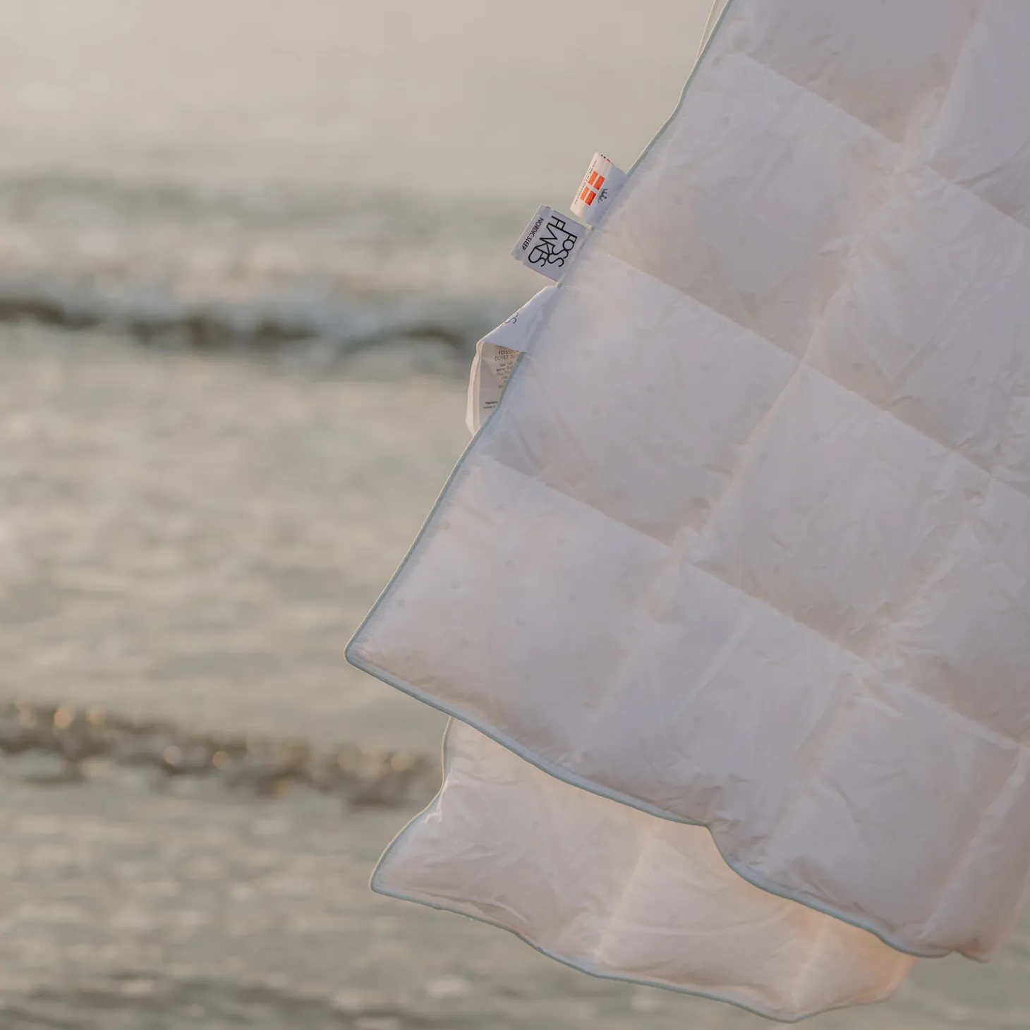 Den perfekte forårsdyne – eller en kølige helårsdyne. Fossflakes Spring er skabt til forårsvejrets skiftende temperament – og til dig, der altid har det varmt om natten. Det her er dynen, der holder dig kølig, samtidig med at du er svøbt i den trygge tyngde, der får dig til at falde til ro. Dynevåret er syet i 100% bomuld med en særlig blød og elegant overflade. Fyldet er en unik blanding af fine små Fossflakes og ultralette polyesterfibre. Desuden er dynen syet med små, gennemstukne kassetter, der skaber såkaldte ‘kuldebroer’, som sammen med det åndbare fyld sikrer dig en kølig nattesøvn. Dynens udformning sikrer at fyldet fordeler sig jævnt og danner ingen klumper efter brug eller vask. Fyldets egenskaber gør, at dynen bevarer sin form og volumen længere. Både fyld og vår er certificeret efter strengeste Oeko-Tex Standard 100 Class 1. Du får en allergivenlig fiberdyne der tåler ofte vask og som takket være det løse fyld, mere minder om en dundyne.Fossflakes dyner er nemme at vedligeholde og bevarer sin fylde, selv efter hyppig vask. Maskinvaskes ved 60° C og holdes derved fri for støvmider. Brug enzymfrit vaskemiddel og undgå brug af skyllemiddel. Kan tørretumbles på uld eller silkeprogram. Tåler ikke høj varme. Er du i tvivl om din maskine kan overholde varmegraderne, så lad i stedet dit Fossflakes produkt lufttørre. Fossflakes er designet og produceret i Danmark.