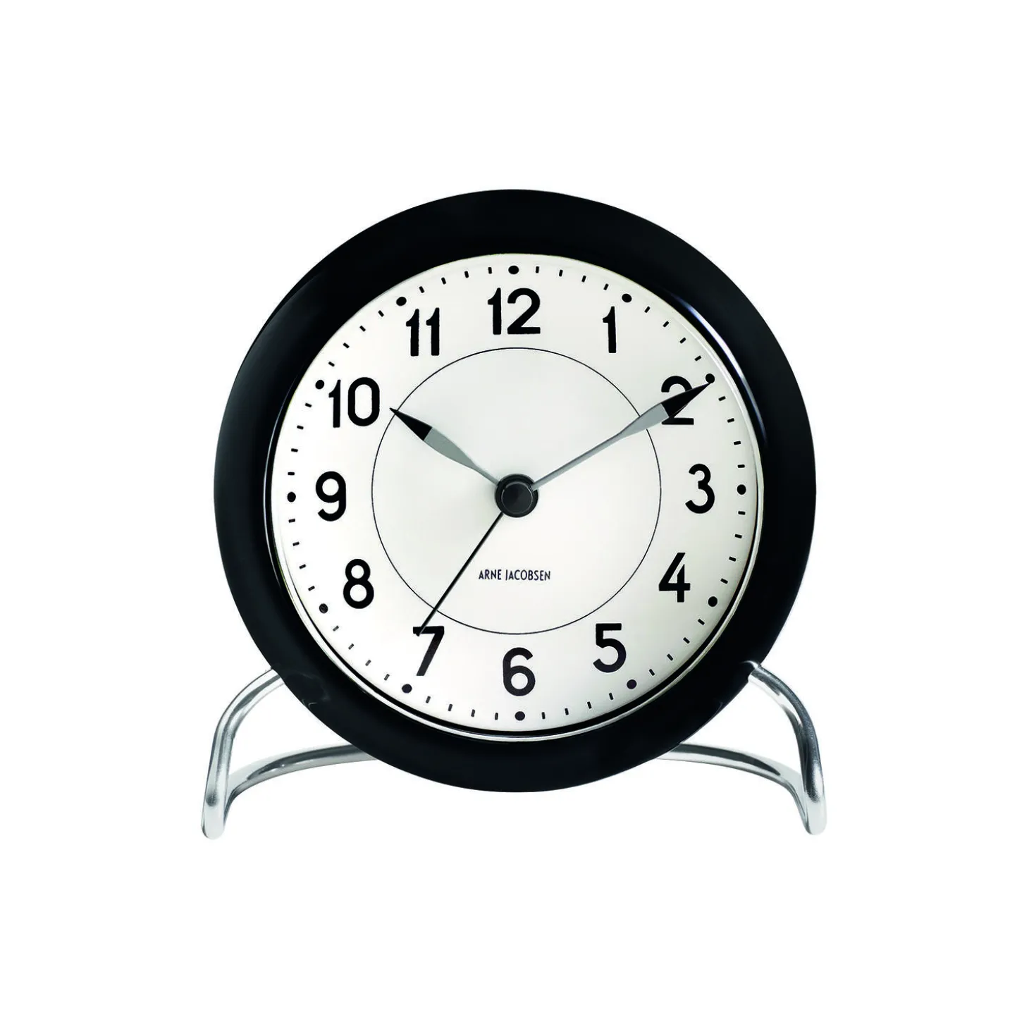Arne Jacobsens LK bordur med sin svungne metalfod blev i 1941 opdateret, da fremstillingen af dobbeltviserne blev for dyr. Jacobsen designede i stedet Station urskiven, der med sin enkle visning af tiden fremstår nærmest Bauhaus’k i sit udtryk. Uret er nu opdateret med både alarm, snoozefunktion og lys, der udløses af en usynlig sensor på toppen af uret. Arne Jacobsens arkitektur og design vakte opsigt overalt dengang. Det magiske er, at det stadig forholder sig sådan.
