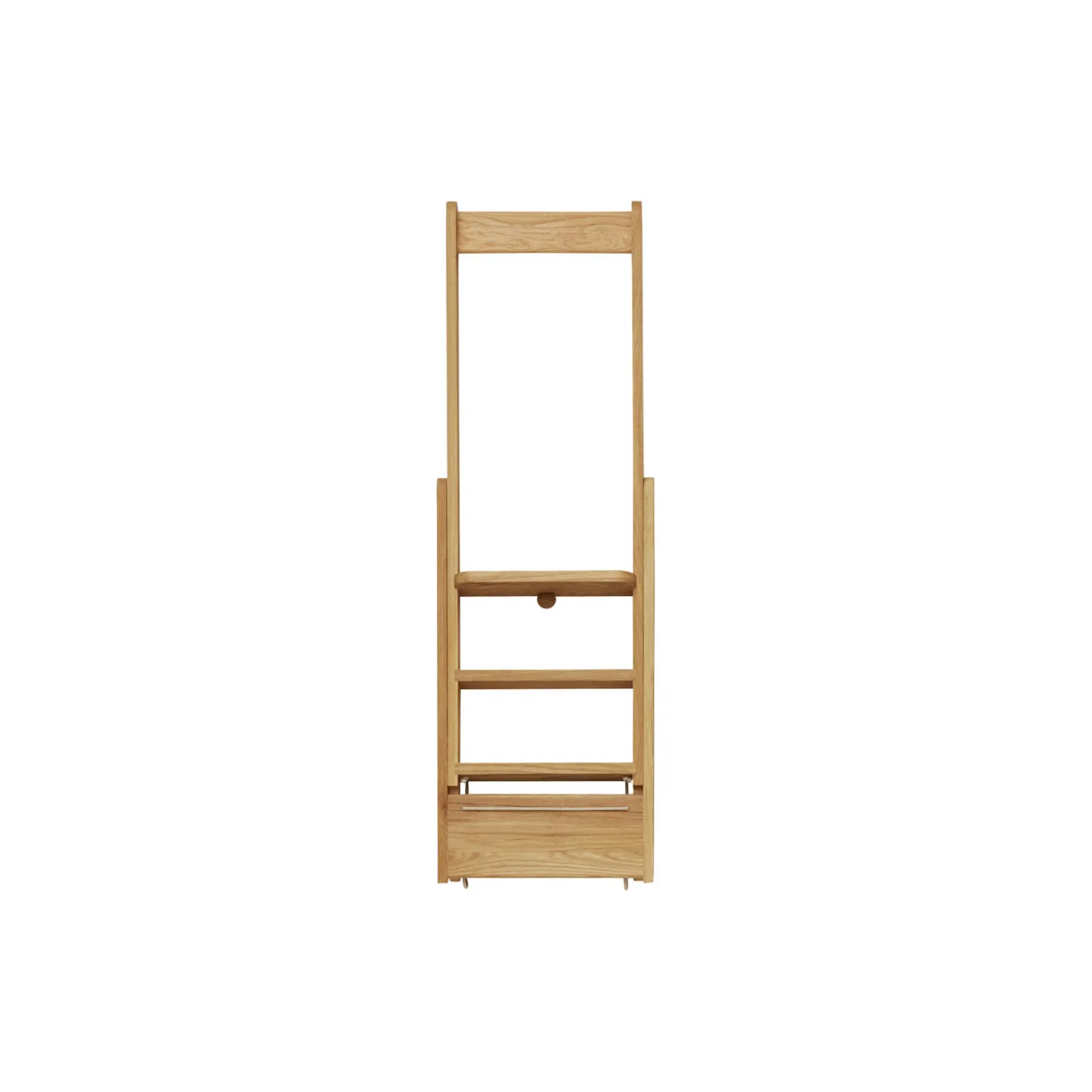 Denne fleksible og gennemtænkte trappestige med tre trin er funktionel og udført i høj kvalitet. Det øverste trin har en større dybde for ekstra sikkerhed og komfort, og stigen afsluttes af et bredt panel som runder designet af og giver god balance. Stigen kan foldes sammen og hænges op på væggen på den lille medfølgende træknage. På den måde kan den også fungere som et dekorativt objekt på væggen. Den ultrastærke flagline sikrer både, at stigen ikke klap per sammen, når den er i brug, og at den ikke ridser væggen, når den er hængt op