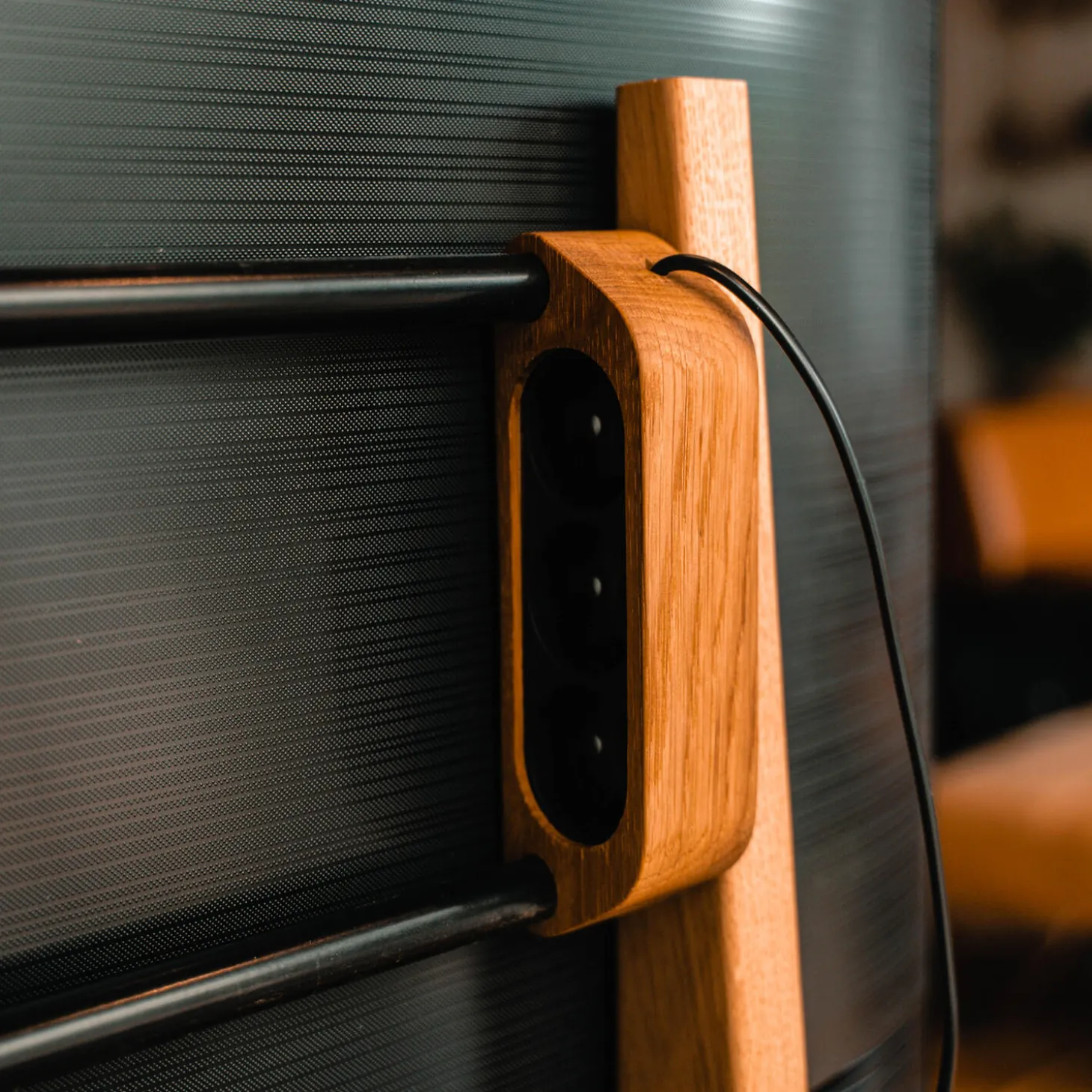 Saml dine ledninger på bagsiden af din TV stander med denne træbeklædte stikdåse udført i egetræ. Fuldender det æstetiske udtryk og undgår at du har en masse ledninger hængende ned under TV’et. Ledningen fra stikdåsen passer i ledningsskjuleren som er fræst i TV standerens bagben. Stikdåserne er produceret ud fra et bæredygtigt perspektiv – hvilket betyder at alle vores stikdåser produceres og samles på sociale værksteder i Danmark og at vi blandt andet bruger træ fra restproduktion som enten skulle brændes af eller smides ud.
