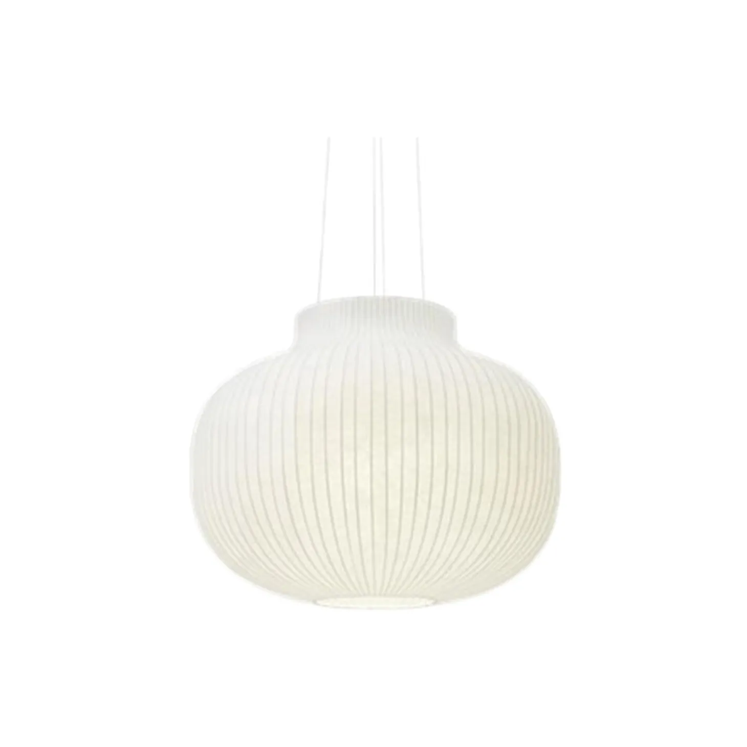 The design has soft, playful forms for a modern expression. Providesboth diffused as well as direct lighting, the latter through its top andbottom opening. Made from a cocoon material, consisting of tinystrands that make a complex, intriguing structure. Ceiling cap included. Bulb not included. Withdimmable function if dimmable bulb is used. Cord & wire length:300 cm / 118,1”