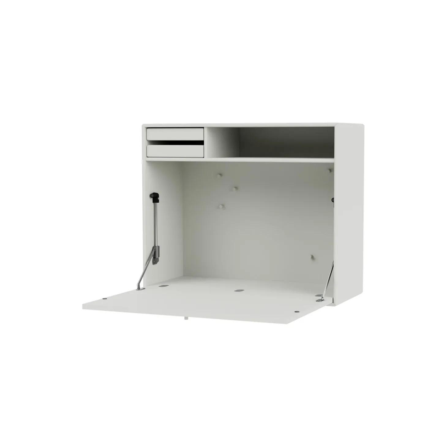STUDIO er et sekretærmodul – en lille arbejdsplads og hjemmekontor som kan foldes ud om morgenen og pakkes diskret væk, når det er fyraften. STUDIO har en indvendig magnetisk opslagstavle og kommer med fem magneter lakeret i samme farve som modulet. Øverst har modulet en hylde samt to små bakkeskuffer, som kan tages helt ud af modulet. STUDIO er en kompakt lille skriveplads med mange funktioner – perfekt til multifunktionelle rum.