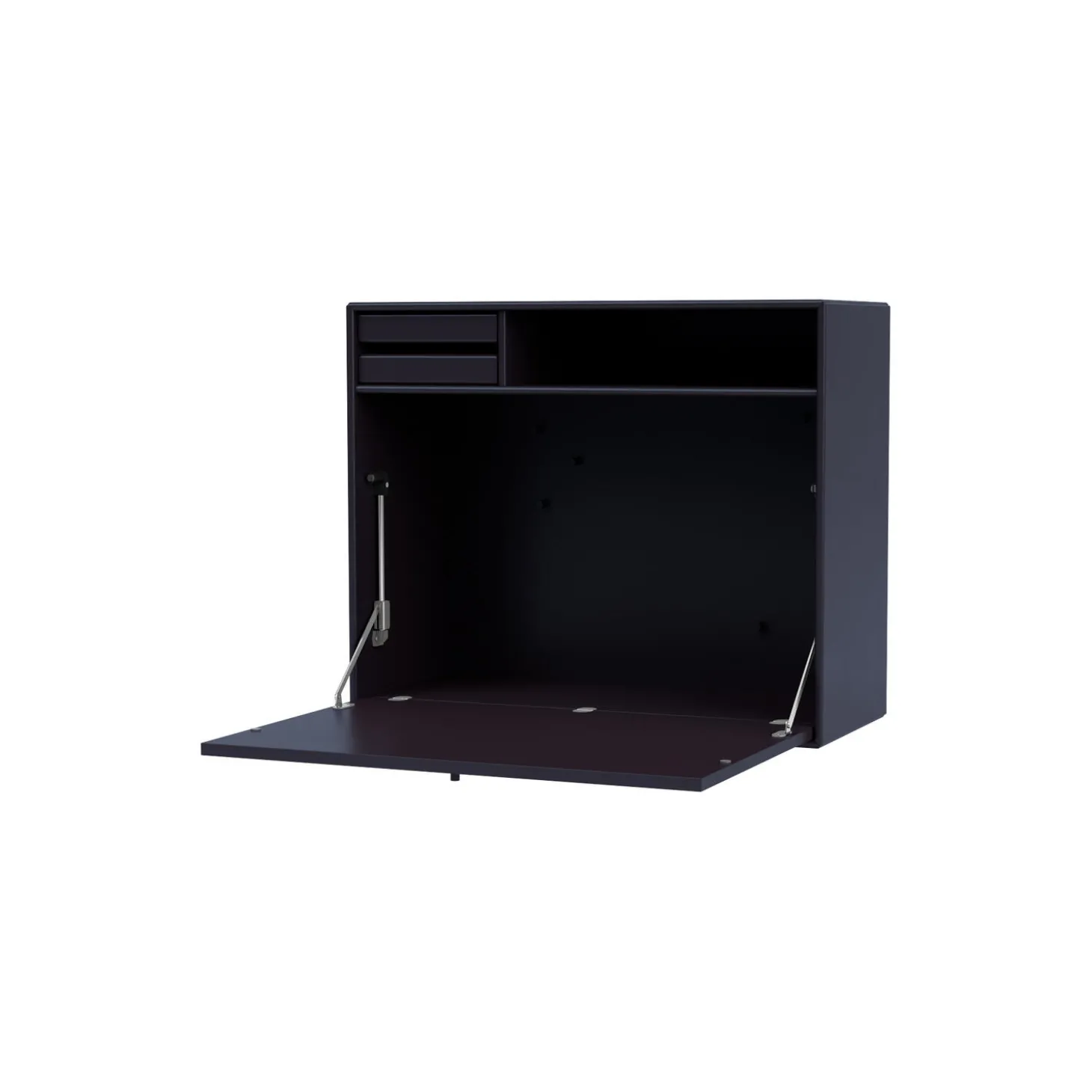 STUDIO er et sekretærmodul – en lille arbejdsplads og hjemmekontor som kan foldes ud om morgenen og pakkes diskret væk, når det er fyraften. STUDIO har en indvendig magnetisk opslagstavle og kommer med fem magneter lakeret i samme farve som modulet. Øverst har modulet en hylde samt to små bakkeskuffer, som kan tages helt ud af modulet. STUDIO er en kompakt lille skriveplads med mange funktioner – perfekt til multifunktionelle rum.