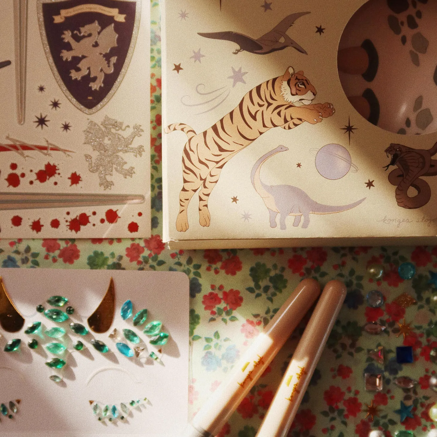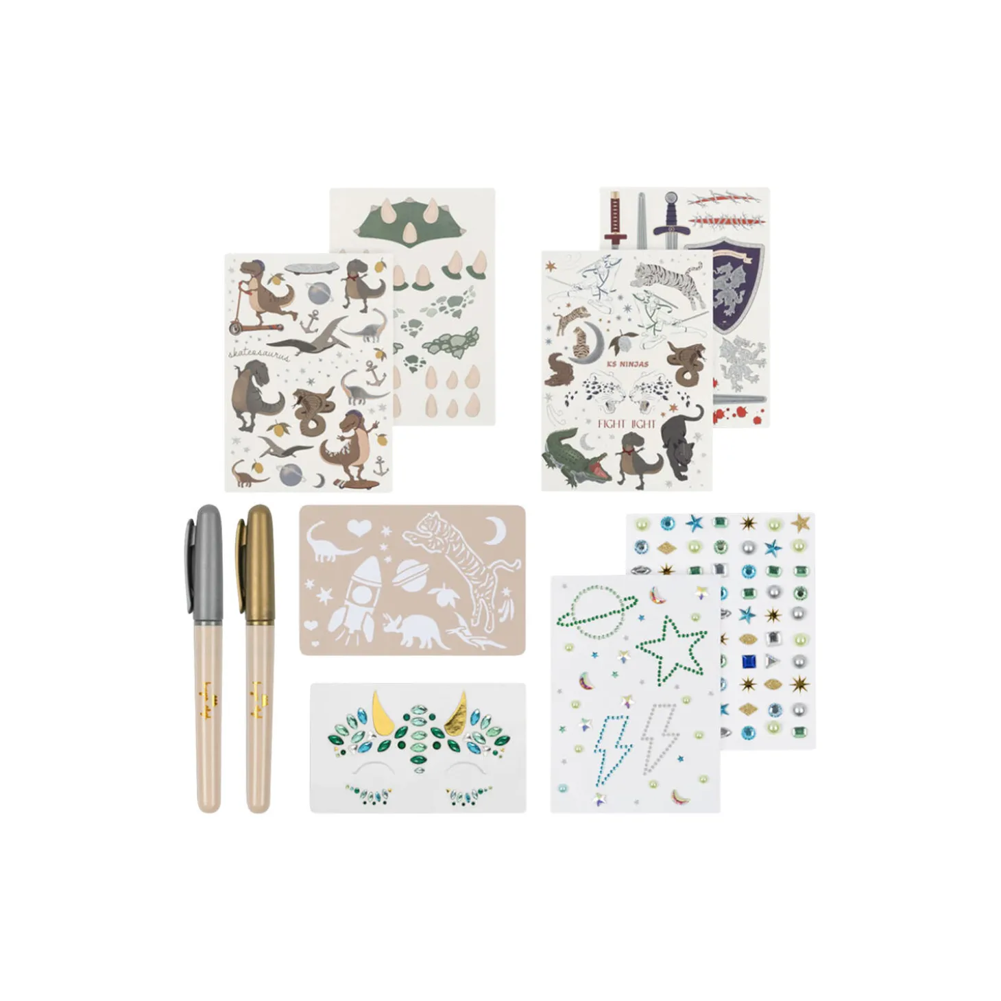 Not allowed for sale in the USStylist set containing:1 sheet nail stickers1 sheet earring stickers2 sheet gem stones2 tattoo pens with stencil3 tattoo sheetsThis product is A-labelled, controlled by FFFH
