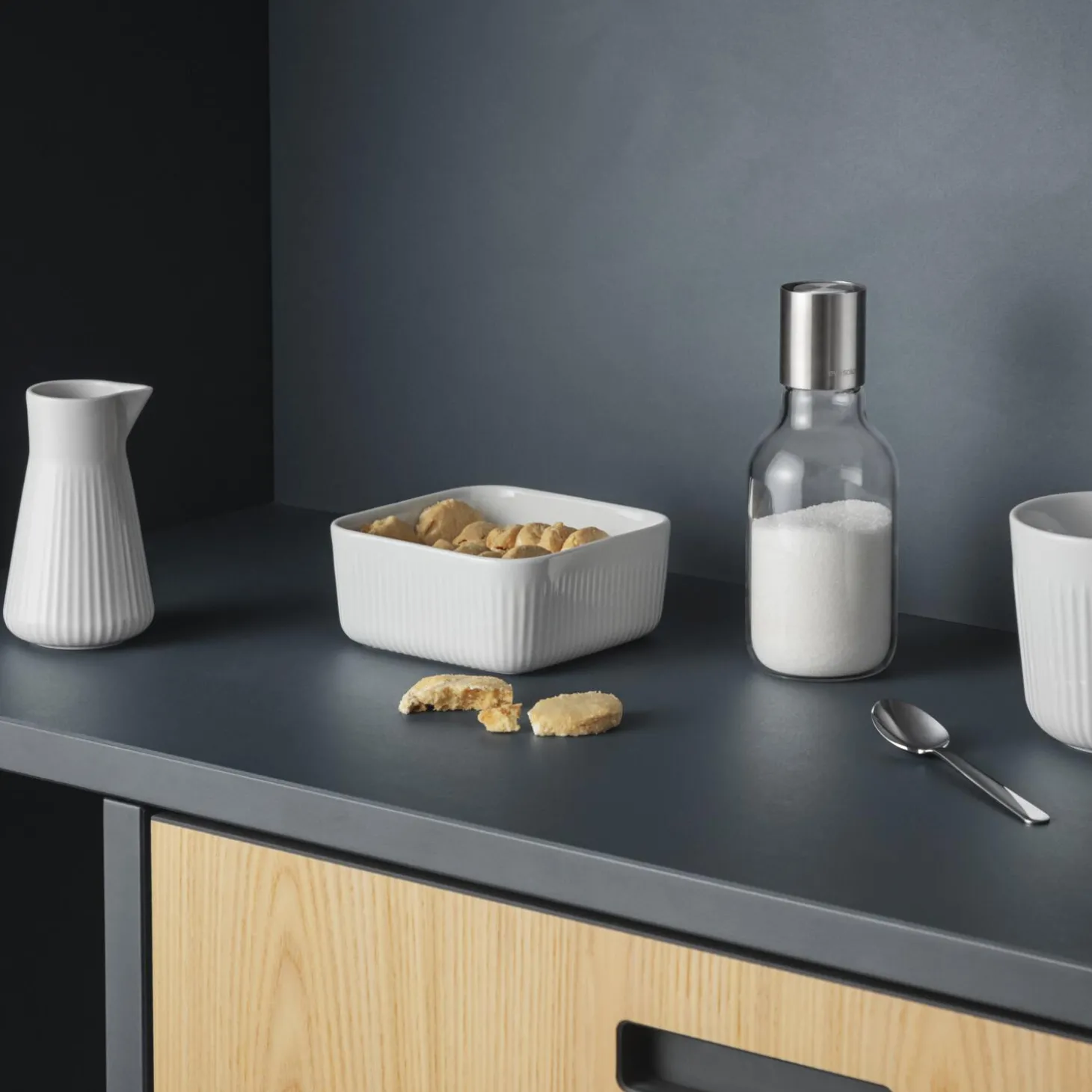 Skift sukkerskålen ud med et nemt og hygiejnisk alternativ; sukkerdispenseren, og hav altid den lille elegante dispenser lige ved hånden. Tip blot dispenseren på hovedet for dosering. Ét tip svarer til én teskefuld sukker. Tåler maskinopvask.