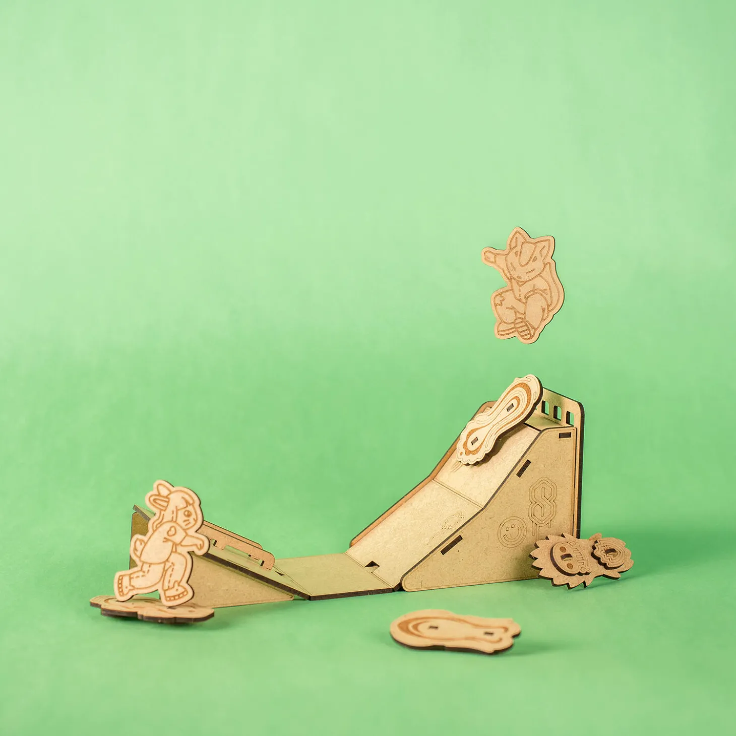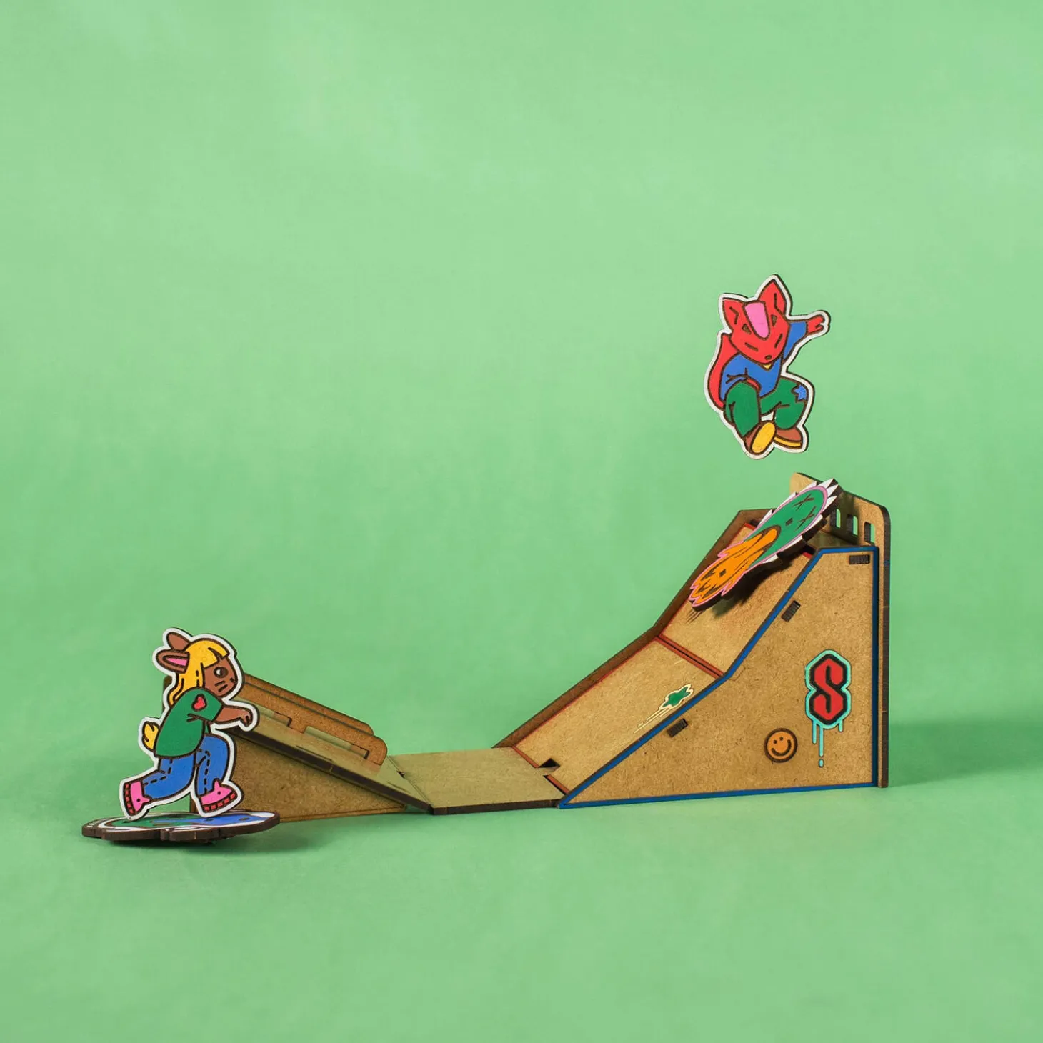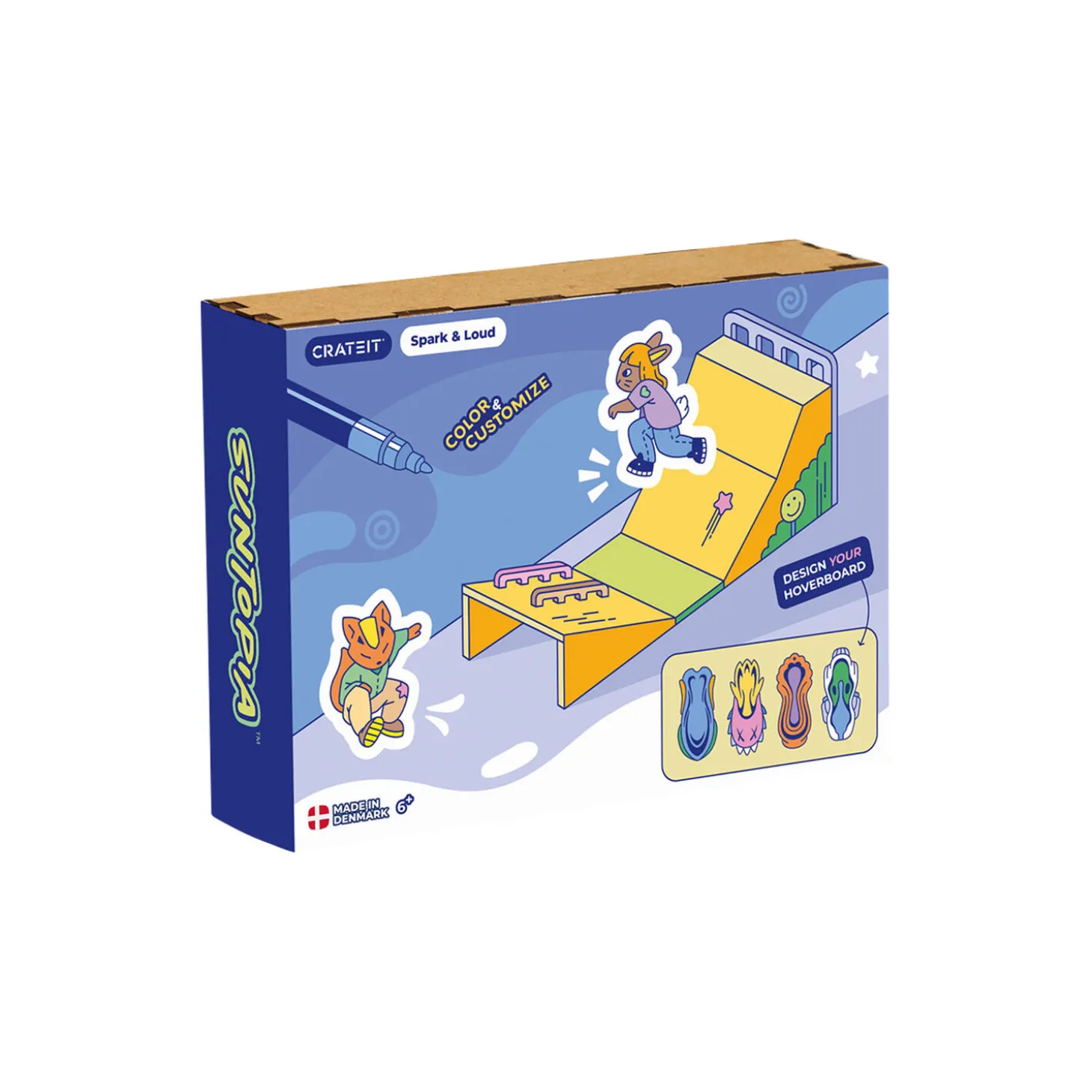 Spark og Loud er et usædvanligt vennepar. Den ene kan ikke tale, og den anden er, tja … højlydt. Ikke desto mindre tilbringer de al deres fritid med at øve tricks i hoverboard-parken. Det var faktisk dem, der selv byggede den. Ved hjælp af en kombination af gamle træplanker, metalaffald og en forladt legeplads betragtes Spark og Loud nu som de bedste skatere i byen. SpecifikationerProduceret i DanmarkAntal figurer/dele: 4 skateboards, 2 figurer, en stor skaterampe Varenummer: C1150 Størrelse på pakken: 12.5×16.5×4.5 Vægt: 0.30 kg. Alle vores produkter er produceret i træ uden farve. Det skal du påføre selv.Kan farvelægges med alle slags tuscher, maling og farveblyanter.Tuscher følger ikke med og kan købes ved siden af.
