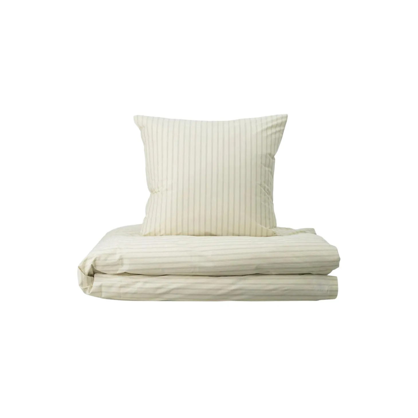 Supima Percale Pinstripe hovedpudebetrækket har slanke nålestriber i Walnut med en baggrund i farven Archive Linen – en lys, nøddefarvet nuance.