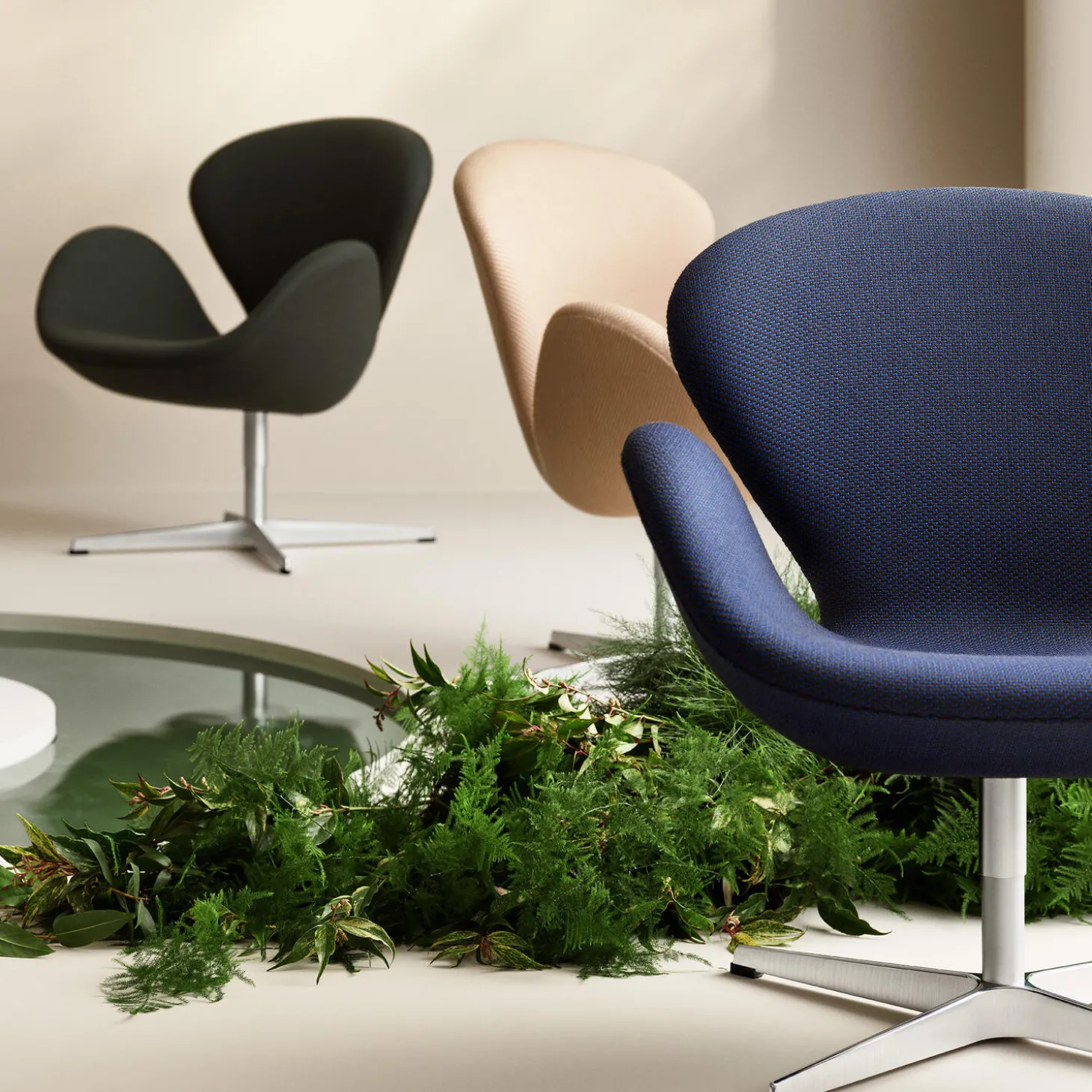 Arne Jacobsen tegnede den smukke Svanen™ stol i 1958 til lobby og loungeområderne på SAS Royal Hotel i København. Designet har ingen lige linjer, men består af indbydende organiske og bløde former, der understøtter stolens simplicitet og stærke arkitektoniske appel.