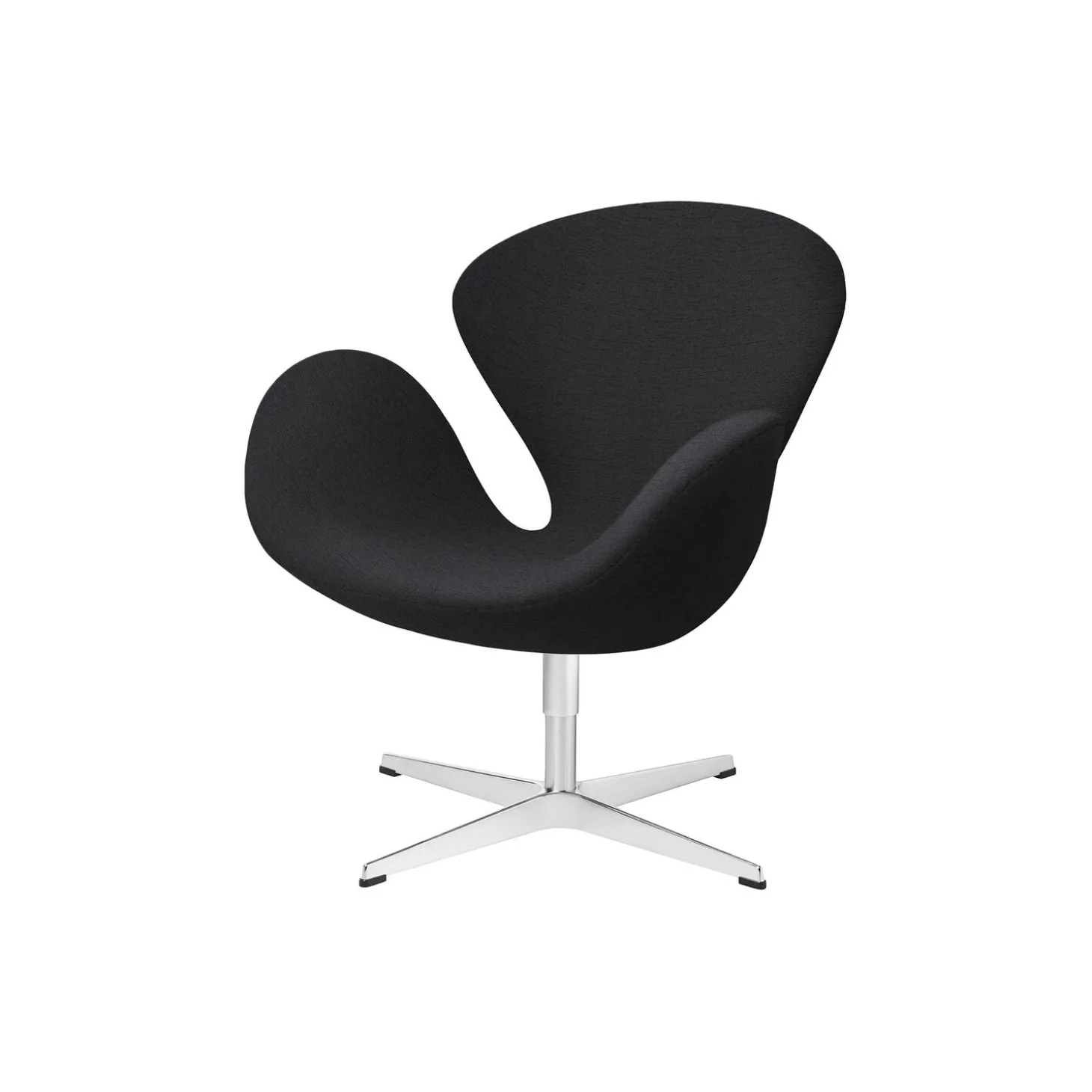 Svanen™ 3320 loungestol med polstring i Christianshavn 1174 og stel i satinpoleret aluminium fra Fritz Hansen. Farve: mørkegrå. Mål: H: 77 x B: 74 x D: 68 cm. Siddehøjde: 40 cm. Design: Arne Jacobsen.