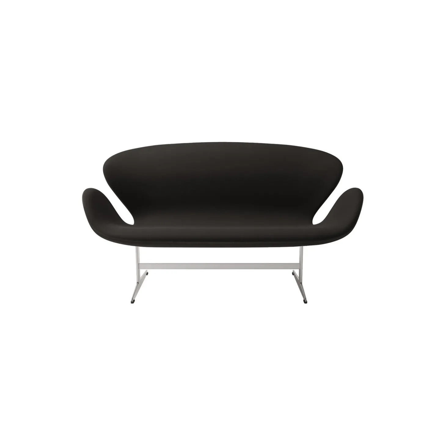 Svanesofa™ 3321 2-pers. sofa med polstring i Christianshavn 1175 tekstil og stel i satinpoleret aluminium fra Fritz Hansen. Farve: sort. Mål: H: 79 x B: 144 x D: 74 cm. Siddehøjde: 40 cm. Design: Arne Jacobsen.